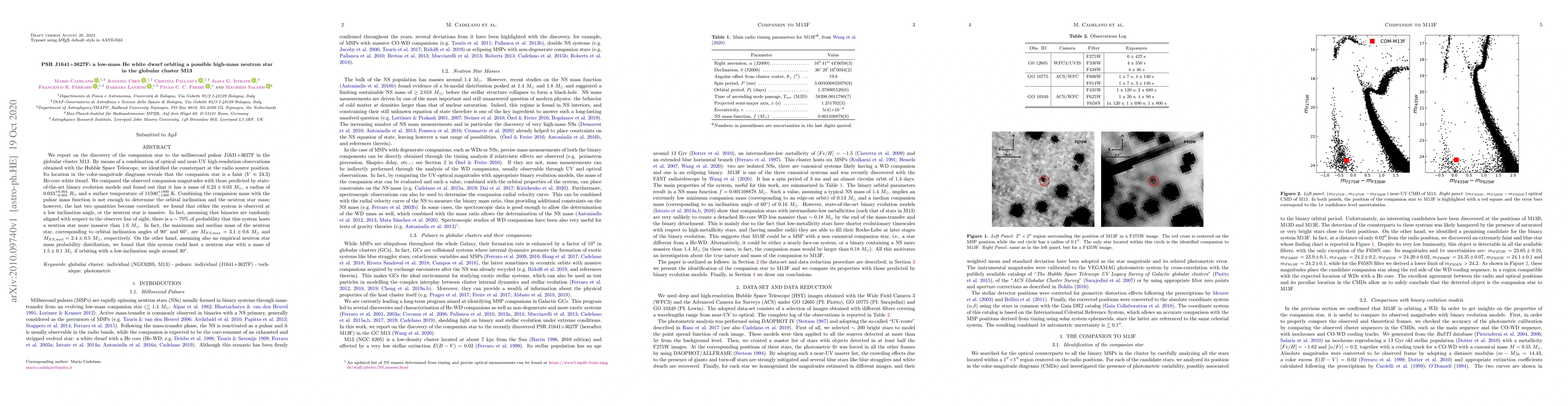 The research identifies a He-core white dwarf companion to the millisecond pulsar J1631+3627F in globular cluster M13 using Hubble Space Telescope data. The white dwarf has a mass of 0.23 ± 0.03 Msun, a radius of 0.033^+0.004_-0.005 Rsun, and a surface temperature of 11500^+1900_-1300 K. Analysis suggests a high likelihood (70%) of a massive neutron star (>1.6 Msun) due to correlation between orbital inclination and neutron star mass.