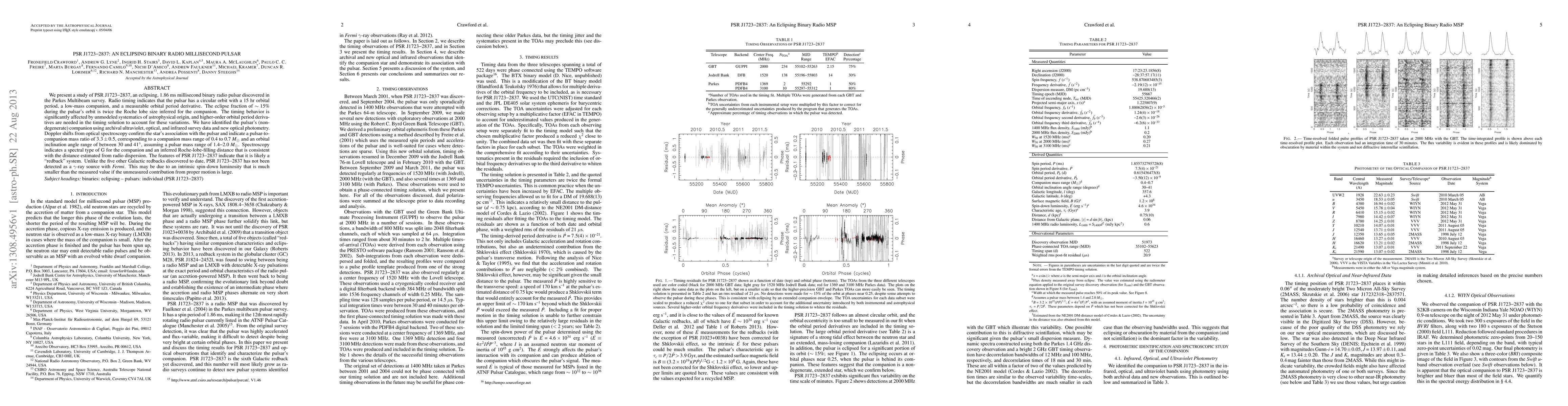 PSR J1723-2837 is an eclipsing binary millisecond pulsar with a 15-hour orbital period and a low-mass companion, identified as a non-degenerate G-type star. Its unique "redback" system features suggest it may not emit detectable gamma rays due to a potentially lower intrinsic spin-down luminosity.