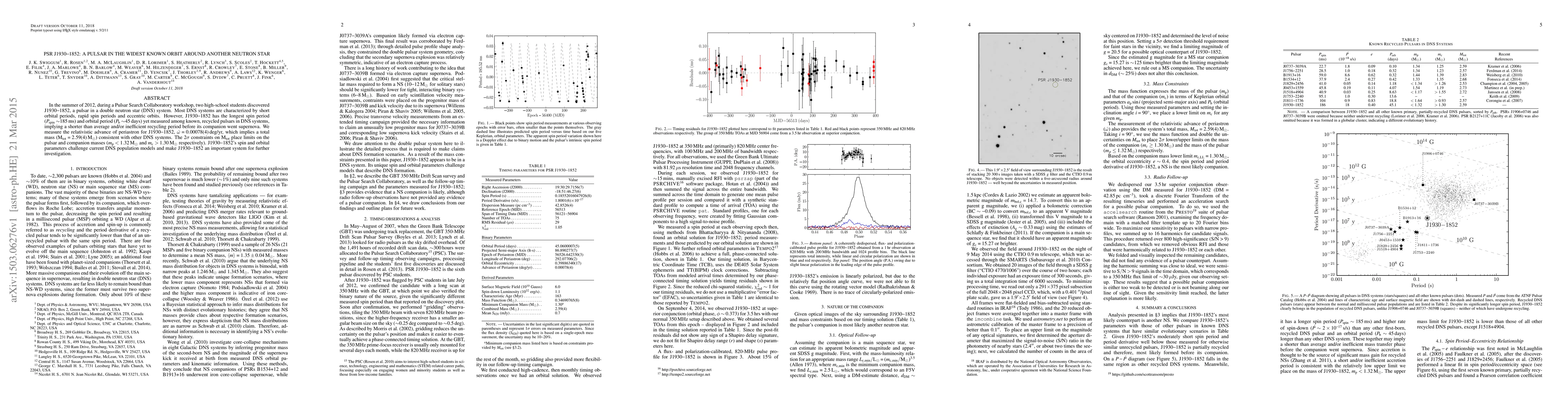 PSR J1930-1852, a pulsar in the widest known orbit around another neutron star, was discovered by high-school students in 2012. It features the longest spin and orbital periods among recycled pulsars, challenging current double neutron star population models.