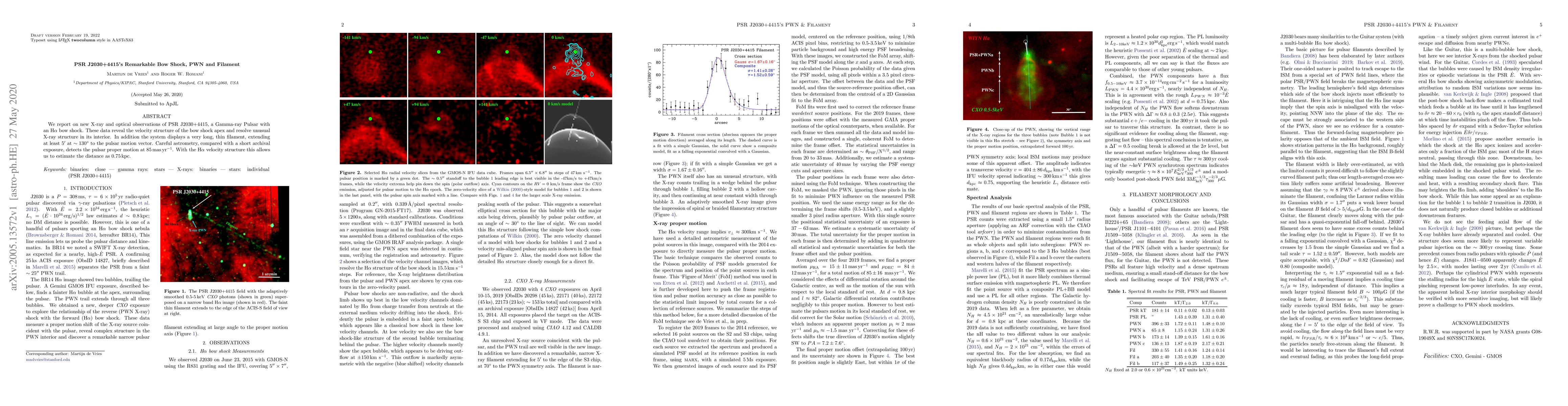 We report on new X-ray and optical observations of PSR J2030+4415, a Gamma-ray Pulsar with an H$\alpha$ bow shock. These data reveal the velocity structure of the bow shock apex and resolve unusual X-ray structure in its interior. In addition the system displays a very long, thin filament, extending at least $5^\prime$ at $\sim 130^\circ$ to the pulsar motion vector. Careful astrometry, compared with a short archival exposure, detects the pulsar proper motion at 85 mas yr$^{-1}$. With the H$\alpha$ velocity structure this allows us to estimate the distance as $0.75$ kpc.