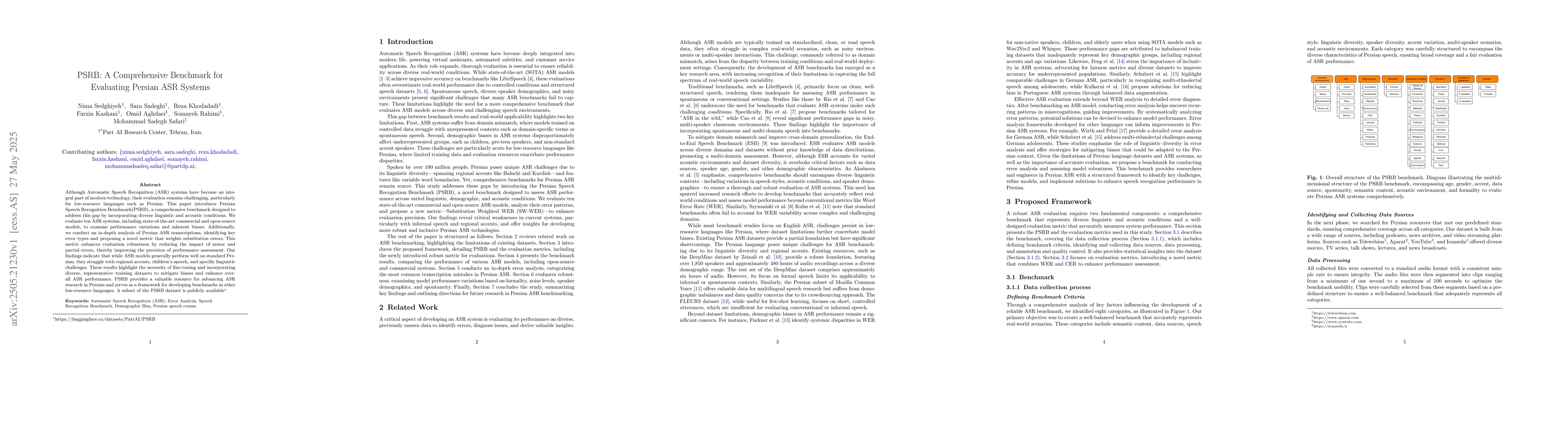 The research introduces PSRB, a comprehensive benchmark for evaluating Persian ASR systems, assessing ten ASR systems including commercial and open-source models under diverse linguistic and acoustic conditions.