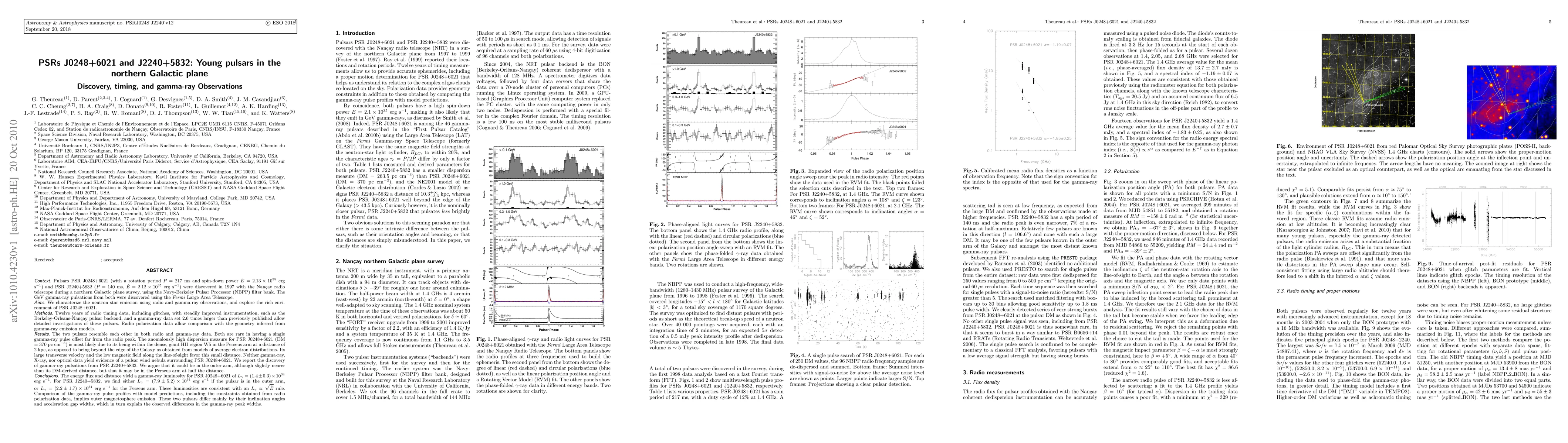 This paper reports the discovery and detailed timing analysis of two young pulsars, PSR J0248+6021 and PSR J2240+5832, observed in the northern Galactic plane. Both pulsars exhibit GeV gamma-ray pulsations detected by the Fermi Large Area Telescope, with PSR J0248+6021 located within the Perseus arm near the dense HII region W5.