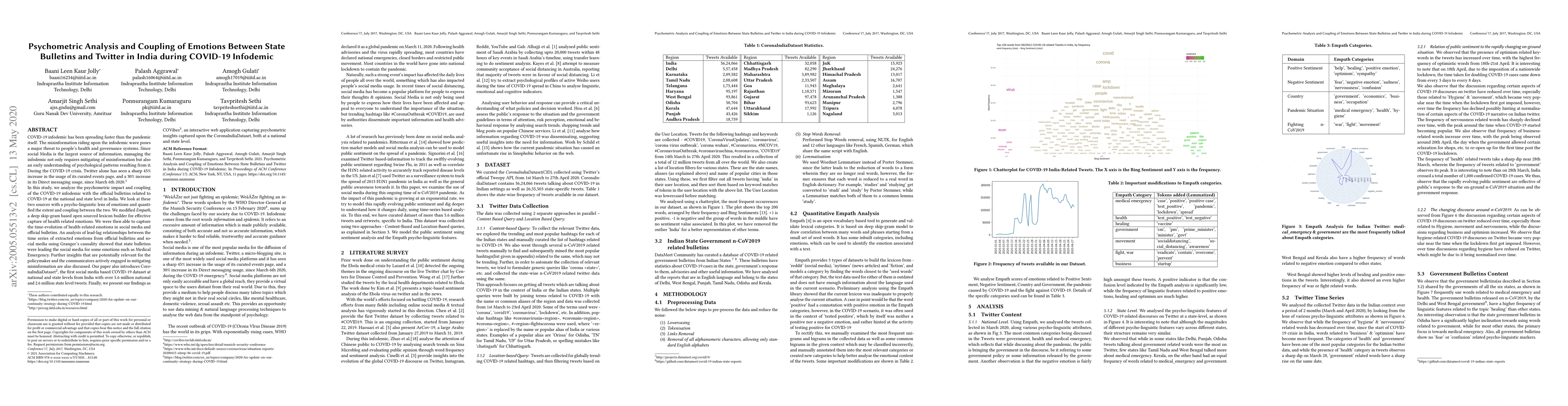 This study analyzes the psychometric impact and coupling of COVID-19 infodemic on Twitter and official state bulletins in India, employing a psycho-linguistic lens to quantify emotional patterns. Findings reveal state bulletins leading social media in certain emotional trends, offering insights for misinformation mitigation and introducing a new dataset and web application for tracking these trends.