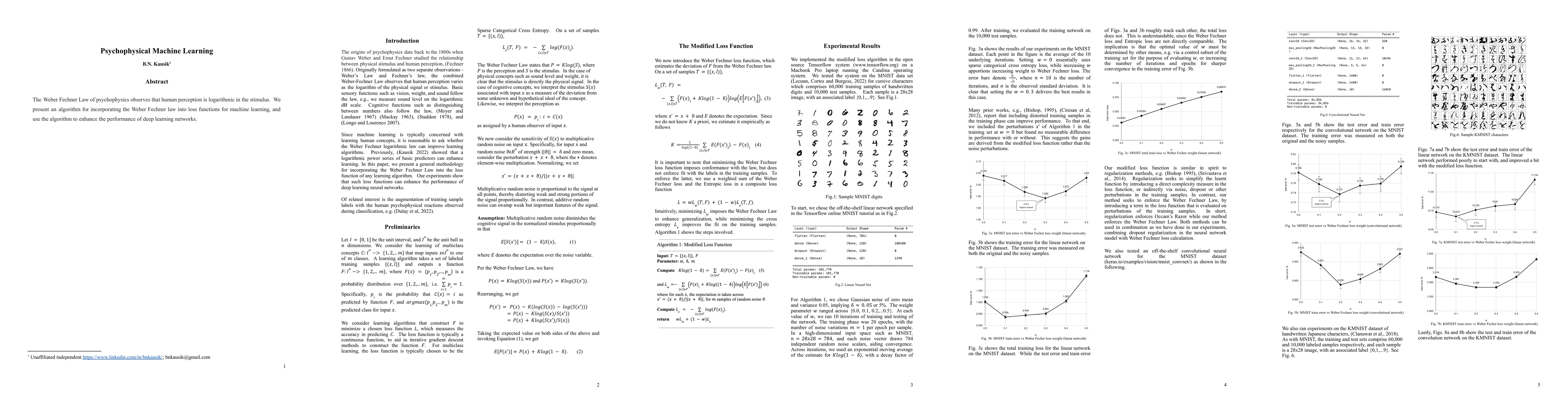 Summary: This paper proposes an algorithm that integrates the Weber Fechner Law into machine learning loss functions to better model human perception, thereby enhancing the performance of deep learning networks.