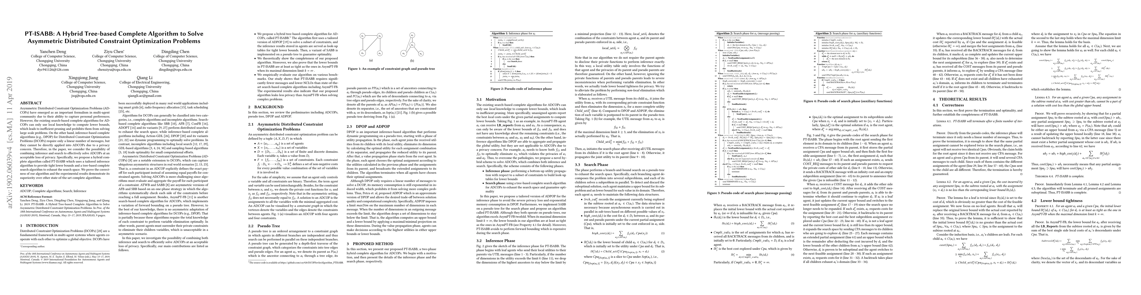 The paper proposes PT-ISABB, a hybrid algorithm combining inference and search to solve Asymmetric Distributed Constraint Optimization Problems (ADCOPs) efficiently. The algorithm leverages tailored inference for lower bounds and tree-based search for complete exploration, proving its effectiveness over existing methods in experiments.