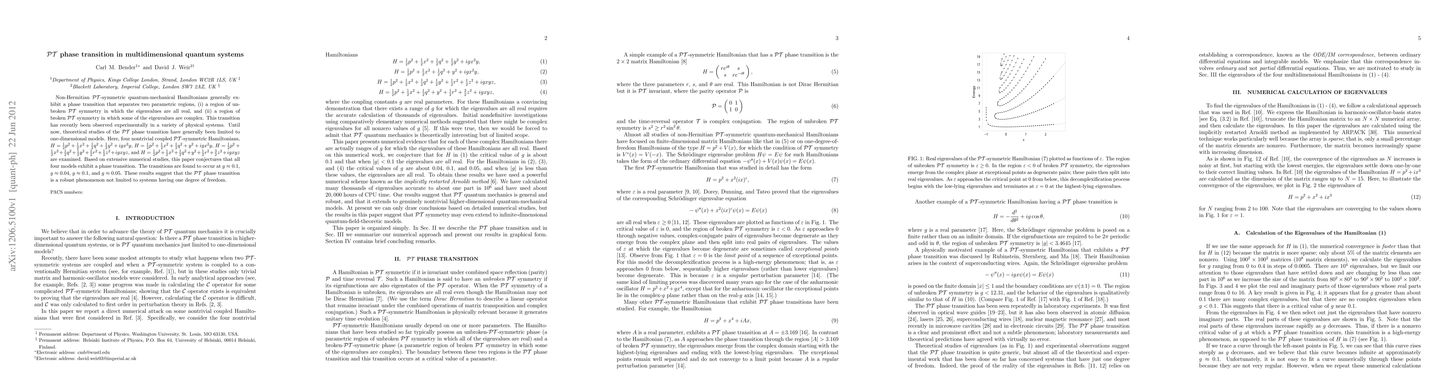This paper investigates the PT phase transition in multidimensional quantum systems using four coupled PT-symmetric Hamiltonians. Through extensive numerical studies, it is conjectured that all four models exhibit a phase transition, suggesting that the PT phase transition is a robust phenomenon across systems with multiple degrees of freedom.