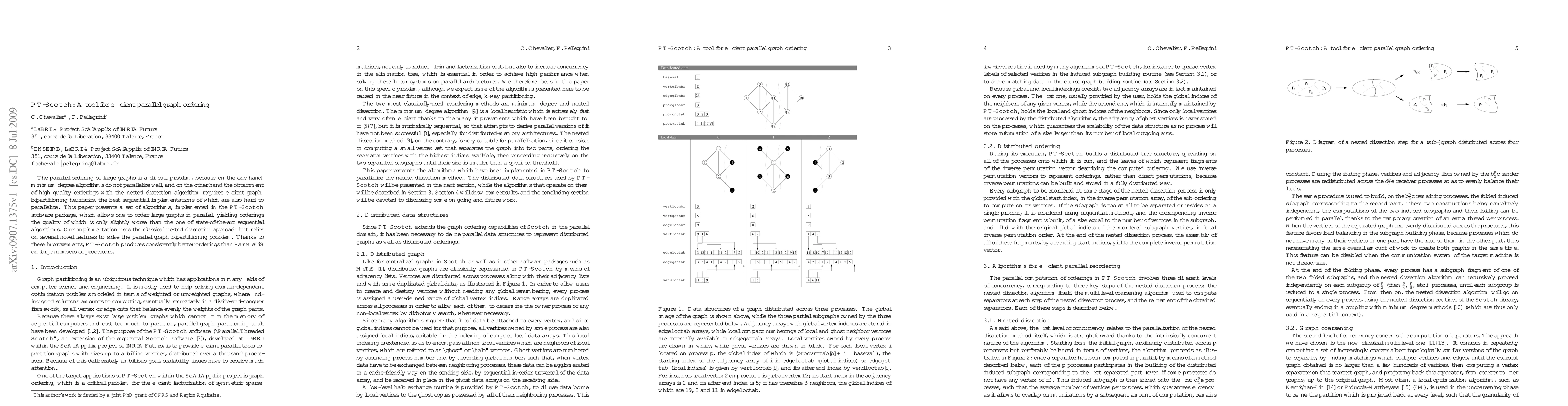 The parallel ordering of large graphs is a difficult problem, because on the one hand minimum degree algorithms do not parallelize well, and on the other hand the obtainment of high quality orderings with the nested dissection algorithm requires efficient graph bipartitioning heuristics, the best sequential implementations of which are also hard to parallelize. This paper presents a set of algorithms, implemented in the PT-Scotch software package, which allows one to order large graphs in parallel, yielding orderings the quality of which is only slightly worse than the one of state-of-the-art sequential algorithms. Our implementation uses the classical nested dissection approach but relies on several novel features to solve the parallel graph bipartitioning problem. Thanks to these improvements, PT-Scotch produces consistently better orderings than ParMeTiS on large numbers of processors.