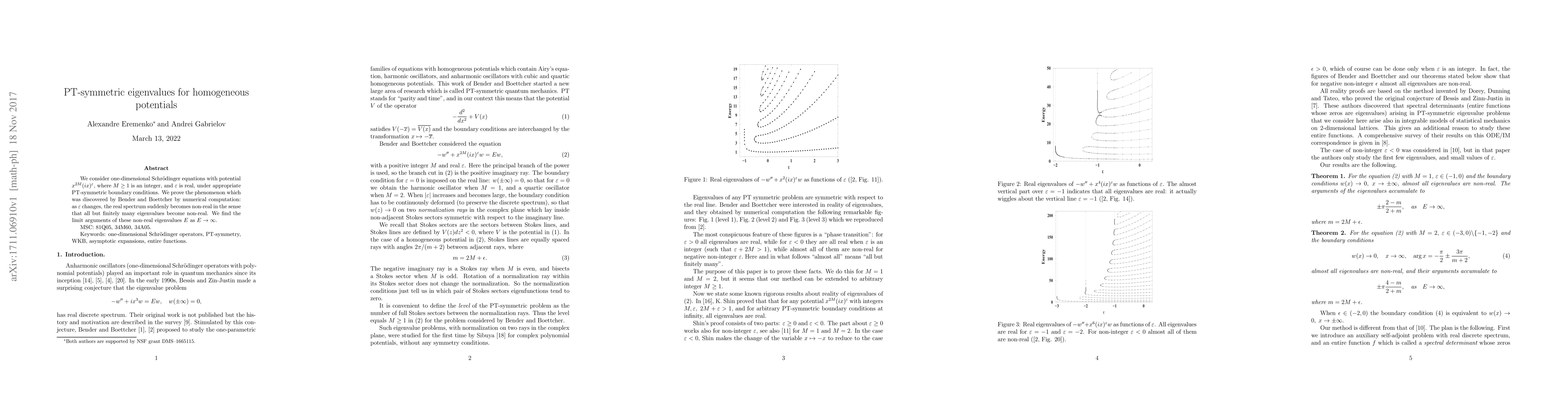 This paper investigates one-dimensional Schrödinger equations with homogeneous PT-symmetric potentials, proving that as the potential degree changes, most eigenvalues transition from real to non-real, with the exception of a finite number. It also determines the asymptotic behavior of the non-real eigenvalues as they approach infinity.