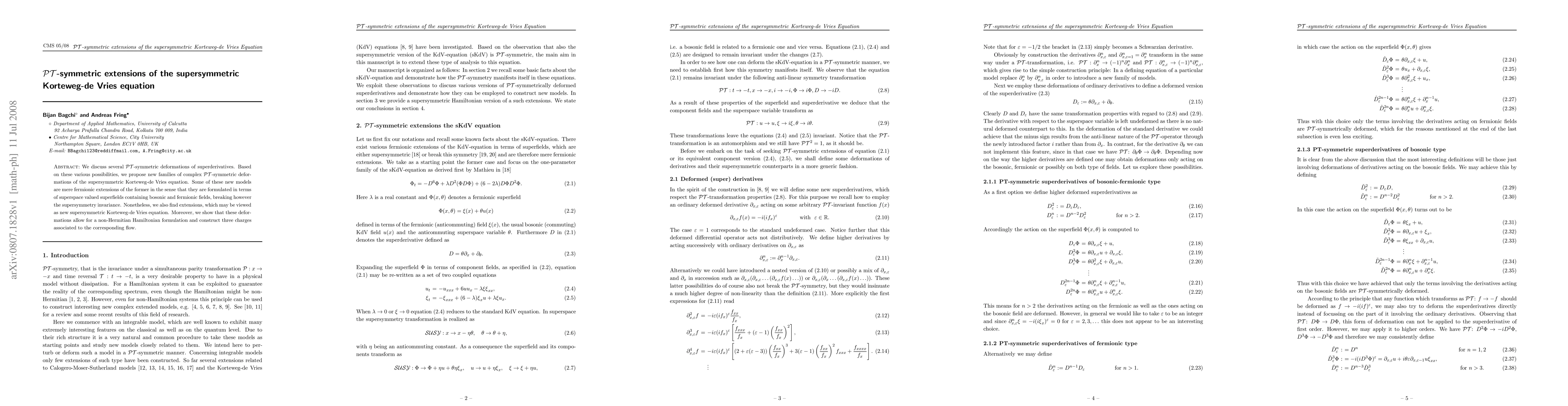 This paper proposes new PT-symmetric deformations of the supersymmetric Korteweg-de Vries equation, including models that break supersymmetry and others that retain it. It also introduces a non-Hermitian Hamiltonian formulation with three associated charges.