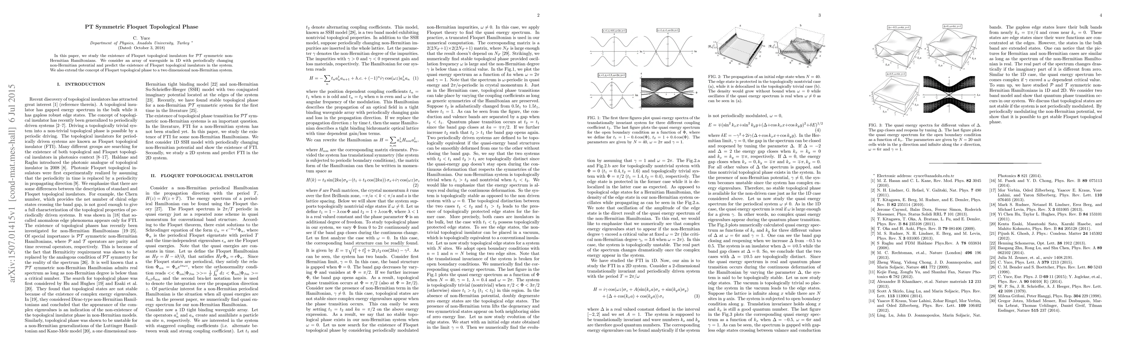 This paper investigates the emergence of Floquet topological insulators in PT symmetric non-Hermitian systems, specifically in a 1D waveguide array with periodically varying potential. It also extends the concept to two-dimensional non-Hermitian systems.