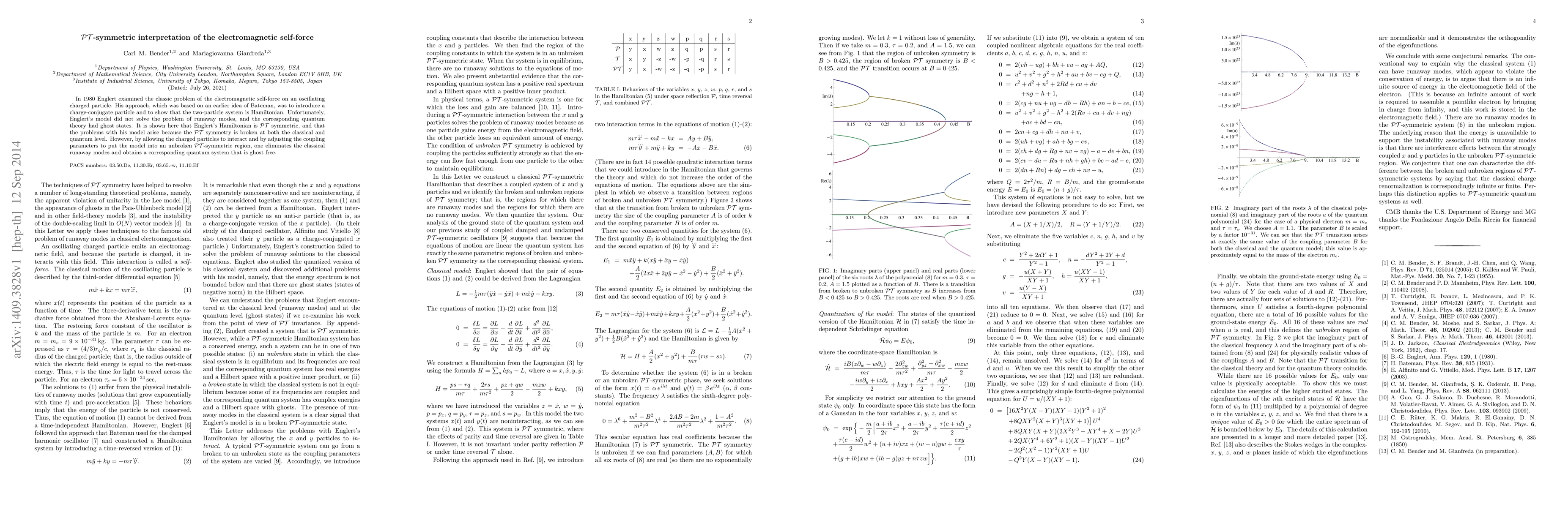 This paper discusses Englert's 1980 approach to the electromagnetic self-force problem, finding it PT-symmetric but with broken symmetry causing classical runaway modes and quantum ghost states. The solution involves allowing charged particles to interact and adjusting coupling parameters to maintain an unbroken PT-symmetric region, thereby eliminating classical runaway modes and ensuring a ghost-free quantum system.