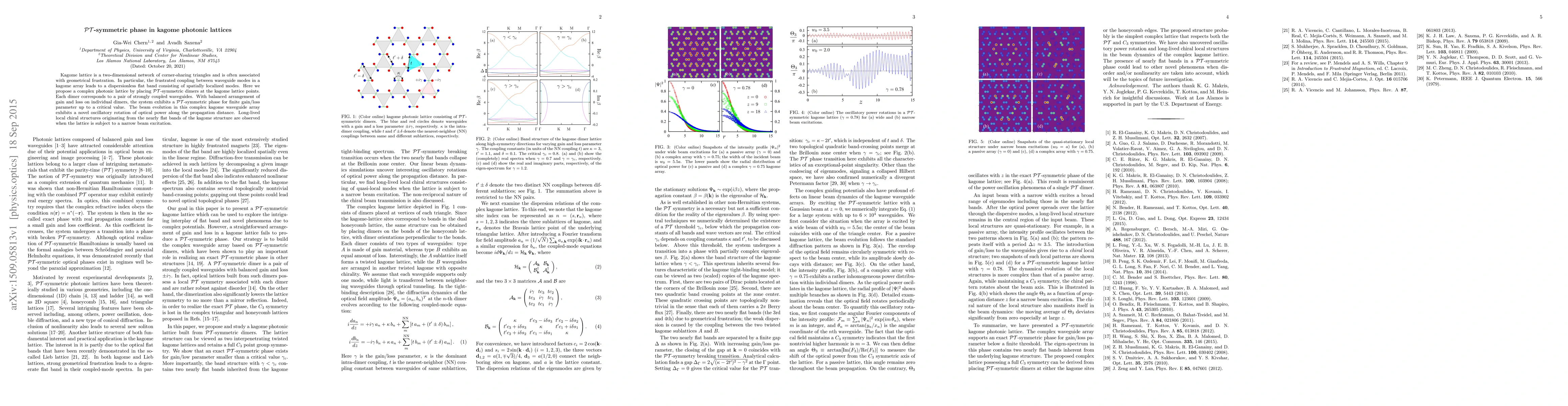 This paper proposes a $\mathcal{PT}$-symmetric photonic lattice in a kagome structure, where $\mathcal{PT}$-symmetric dimers create a phase with oscillatory rotation of optical power and long-lived local chiral structures due to the flat bands. The system exhibits stability up to a critical gain/loss parameter.