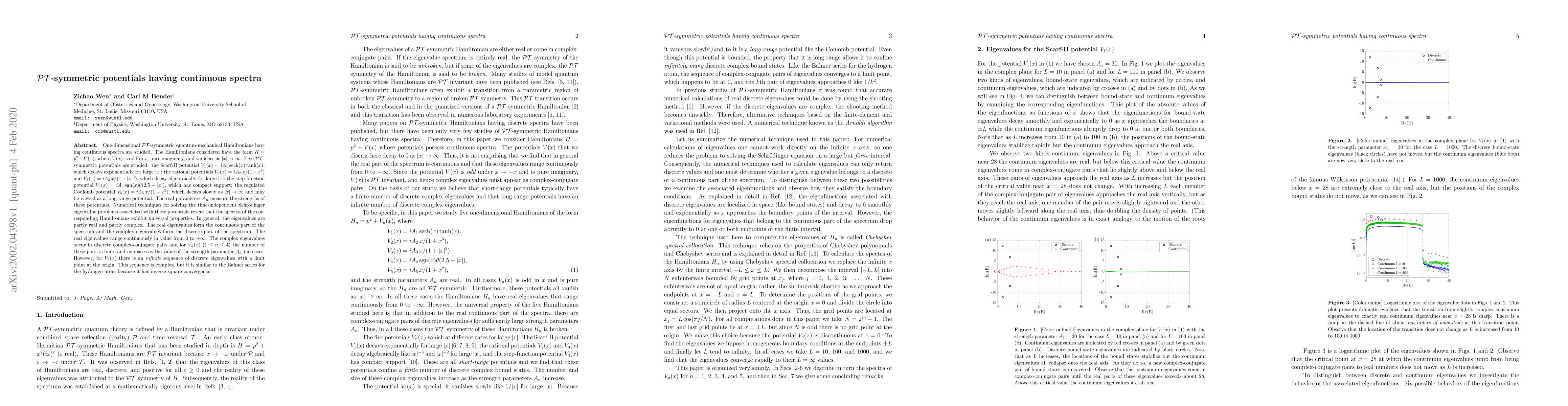 Research finds that certain one-dimensional PT-symmetric quantum-mechanical Hamiltonians with continuous spectra exhibit universal properties, including real eigenvalues forming a continuous spectrum and complex eigenvalues occurring in discrete pairs or sequences.