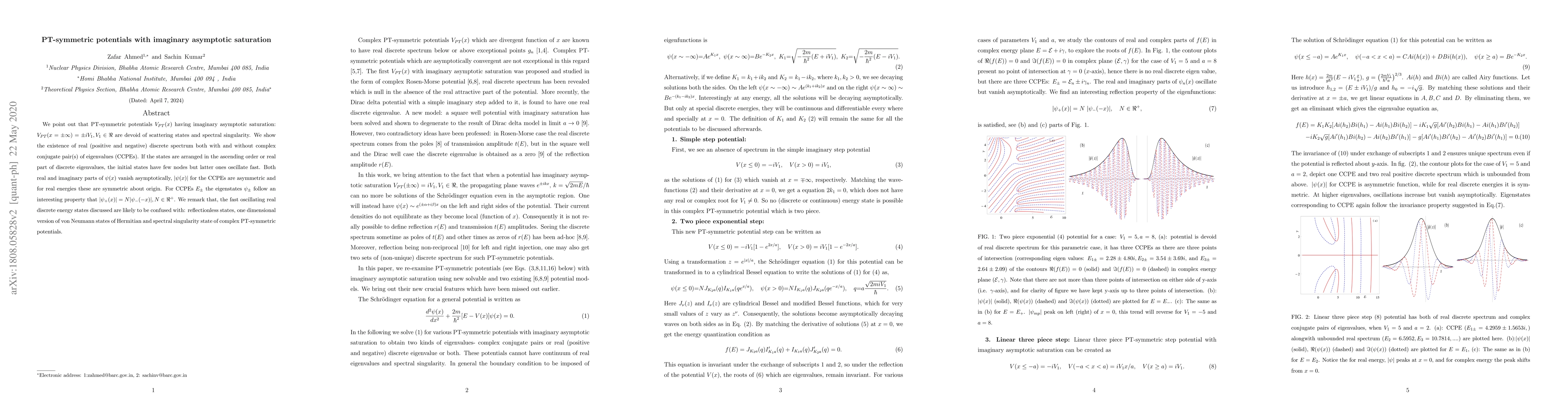 This paper investigates PT-symmetric potentials with imaginary asymptotic saturation, revealing the absence of scattering states and spectral singularities. It demonstrates the presence of real discrete spectra with or without complex conjugate pairs, showing that initial states have few nodes while later ones oscillate rapidly.