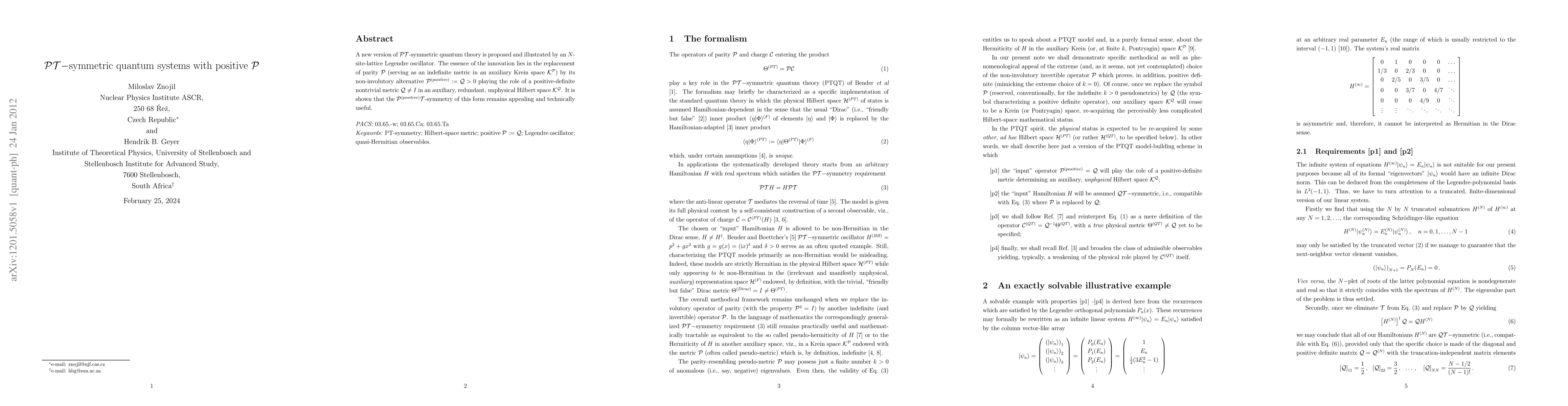 Researchers propose a new version of PT-symmetric quantum theory using a positive metric instead of indefinite parity, showing its usefulness in a lattice Legendre oscillator.