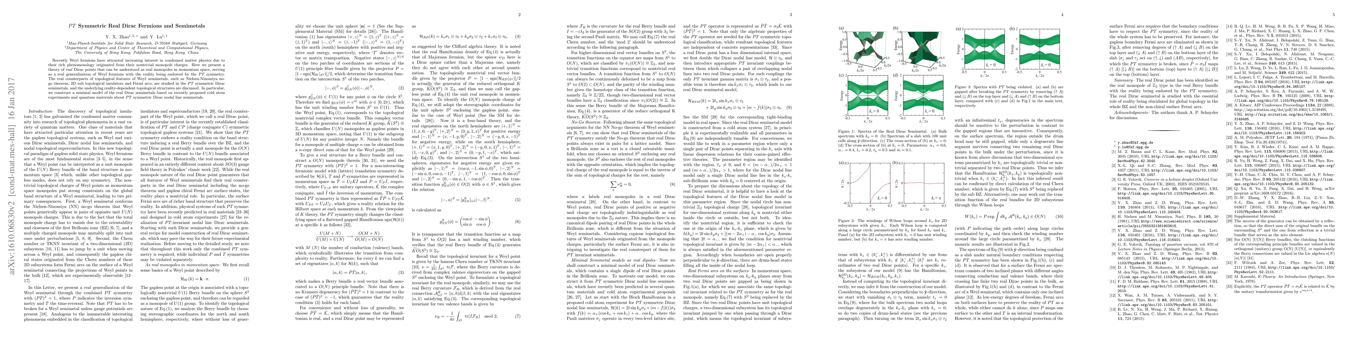 This paper develops a theory of $PT$ symmetric real Dirac fermions, presenting real generalizations of Weyl fermions with $PT$ symmetry. It explores topological features in $PT$ symmetric Dirac semimetals, including the Nielsen-Ninomiya no-go theorem, 2D sub topological insulators, and Fermi arcs, and constructs a minimal model based on cold atom experiments and quantum materials.