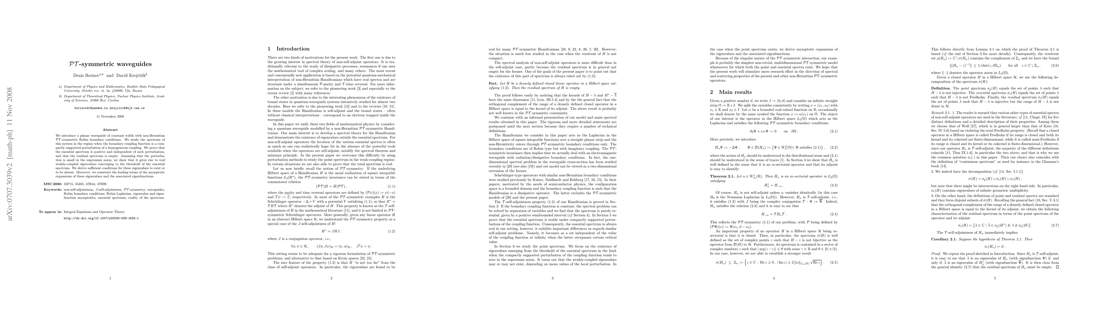 This research introduces a non-Hermitian PT-symmetric planar waveguide, proving its essential spectrum is positive and perturbation-independent. Small perturbations yield real weakly-coupled eigenvalues converging to the essential spectrum threshold, with conditions and asymptotic expansions for these eigenvalues and associated eigenfunctions derived.