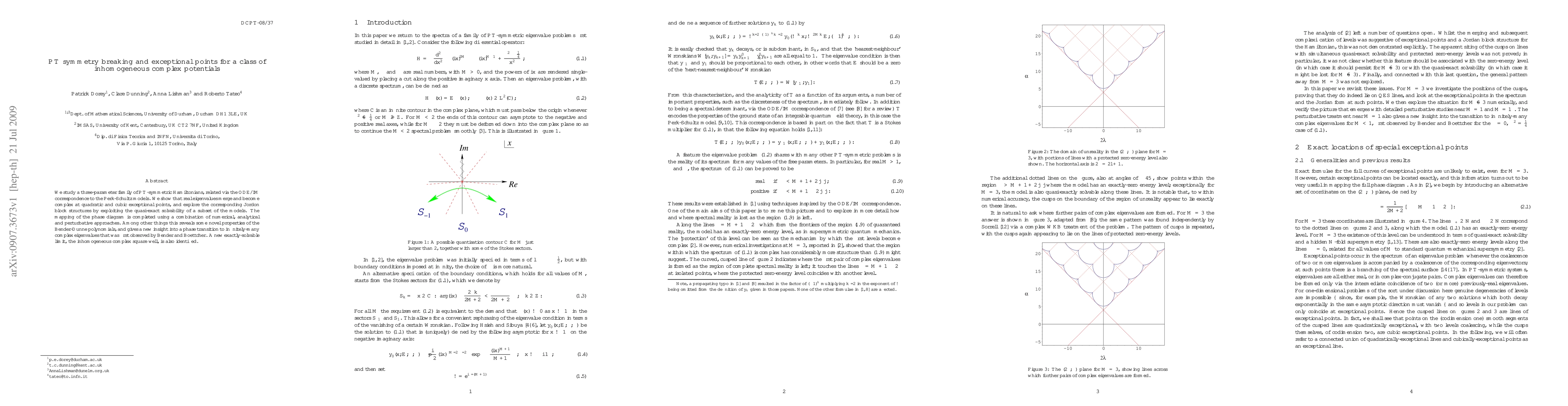 We study a three-parameter family of PT-symmetric Hamiltonians, related via the ODE/IM correspondence to the Perk-Schultz models. We show that real eigenvalues merge and become complex at quadratic and cubic exceptional points, and explore the corresponding Jordon block structures by exploiting the quasi-exact solvability of a subset of the models. The mapping of the phase diagram is completed using a combination of numerical, analytical and perturbative approaches. Among other things this reveals some novel properties of the Bender-Dunne polynomials, and gives a new insight into a phase transition to infinitely-many complex eigenvalues that was first observed by Bender and Boettcher. A new exactly-solvable limit, the inhomogeneous complex square well, is also identified.