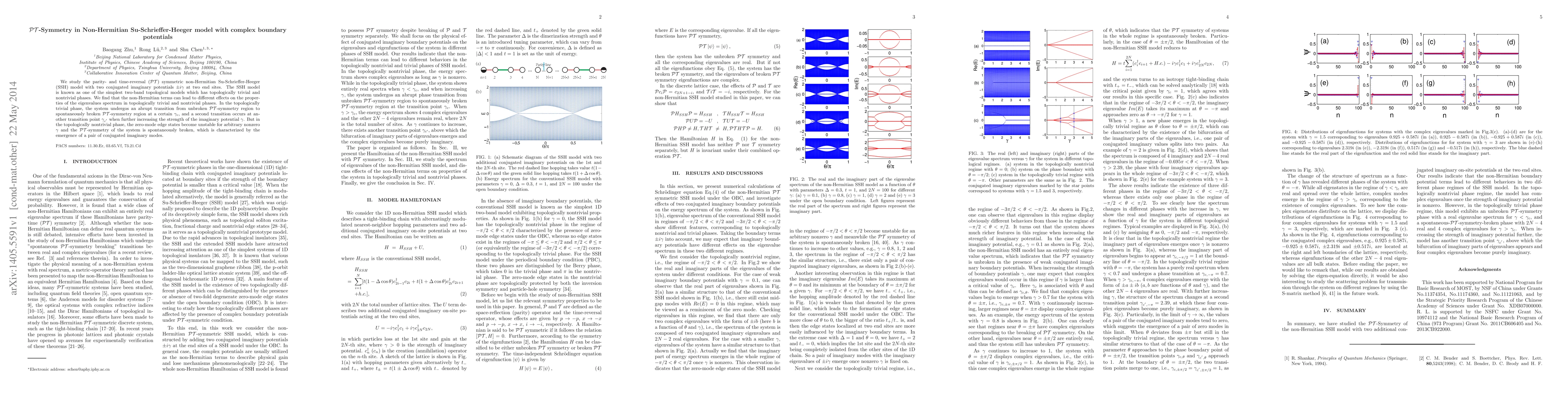 This paper investigates the PT-symmetry in a non-Hermitian Su-Schrieffer-Heeger model with complex boundary potentials, revealing distinct effects on the eigenvalue spectrum in topologically trivial and nontrivial phases. In the trivial phase, transitions from unbroken to spontaneously broken PT-symmetry occur at specific potential strengths, while in the nontrivial phase, edge states become unstable, leading to spontaneous PT-symmetry breaking.