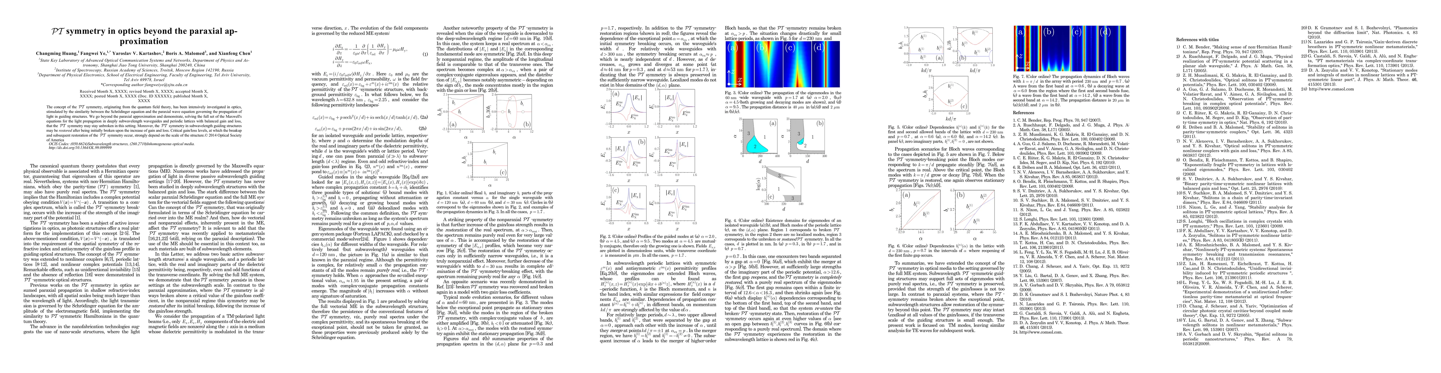 This paper explores PT-symmetry in optics beyond the paraxial approximation, demonstrating that PT symmetry can remain unbroken in deeply subwavelength waveguides and periodic lattices with balanced gain and loss, and can be restored after initial breakdown by increasing gain and loss levels, which depend on the structure's scale.