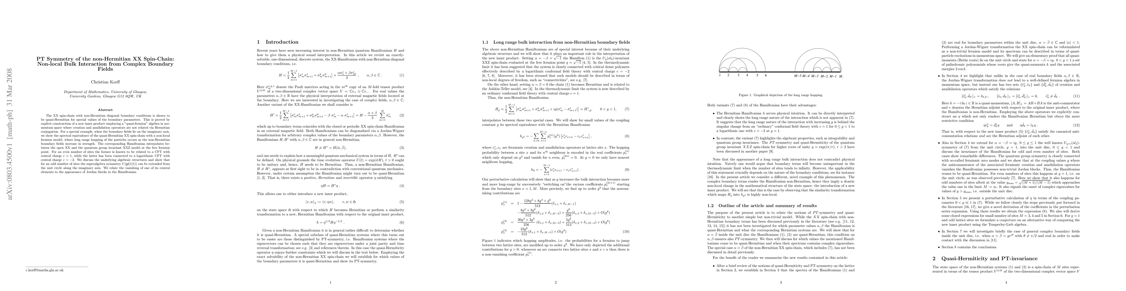 This study investigates the quasi-Hermitian properties of a non-Hermitian XX spin-chain, revealing spectral equivalence with a non-local fermion model via a complex boundary interaction. It demonstrates the Hamiltonian's interpolation between open XX and quantum group invariant XXZ models, linking these systems to distinct conformal field theories.