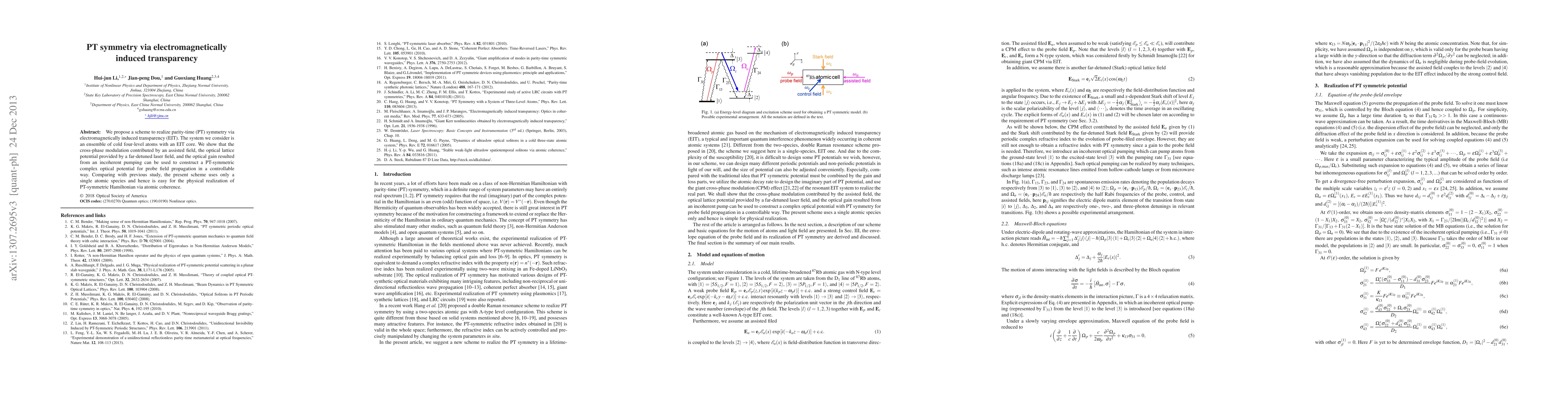 This paper proposes a method to achieve PT symmetry using electromagnetically induced transparency in a four-level atomic ensemble. The scheme employs cross-phase modulation, optical lattice potential, and optical gain to construct a controllable PT-symmetric complex optical potential, simplifying physical realization with a single atomic species.