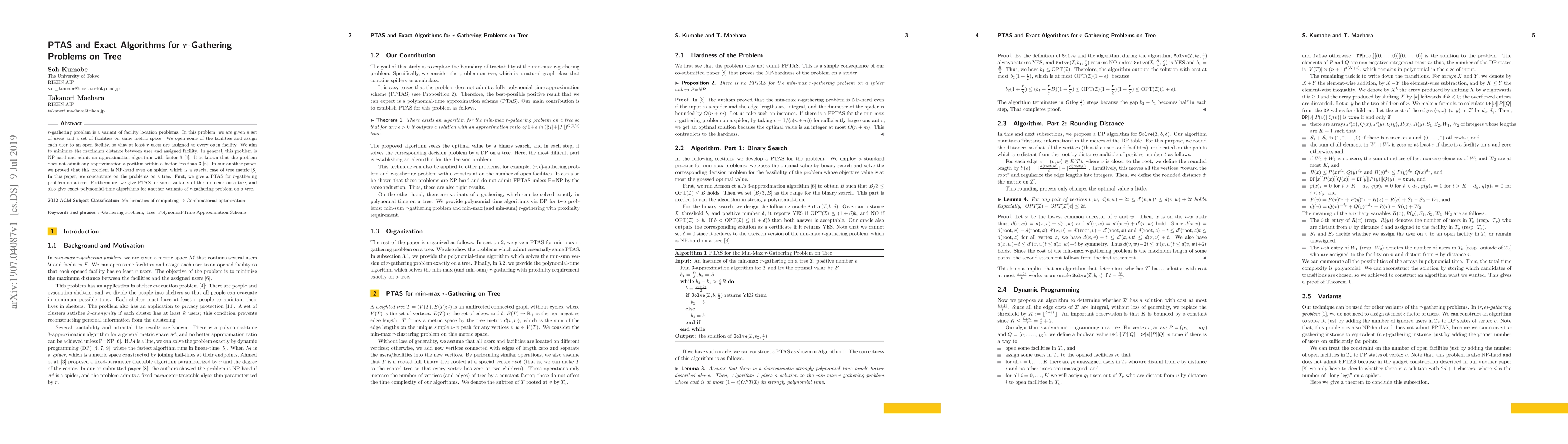 r-gathering problem is a variant of facility location problems. In this problem, we are given a set of users and a set of facilities on same metric space. We open some of the facilities and assign each user to an open facility, so that at least r users are assigned to every open facility. We aim to minimize the maximum distance between user and assigned facility. In general, this problem is NP-hard and admit an approximation algorithm with factor 3. It is known that the problem does not admit any approximation algorithm within a factor less than 3. In our another paper, we proved that this problem is NP-hard even on spider, which is a special case of tree metric. In this paper, we concentrate on the problems on a tree. First, we give a PTAS for r-gathering problem on a tree. Furthermore, we give PTAS for some variants of the problems on a tree, and also give exact polynomial-time algorithms for another variants of r-gathering problem on a tree.