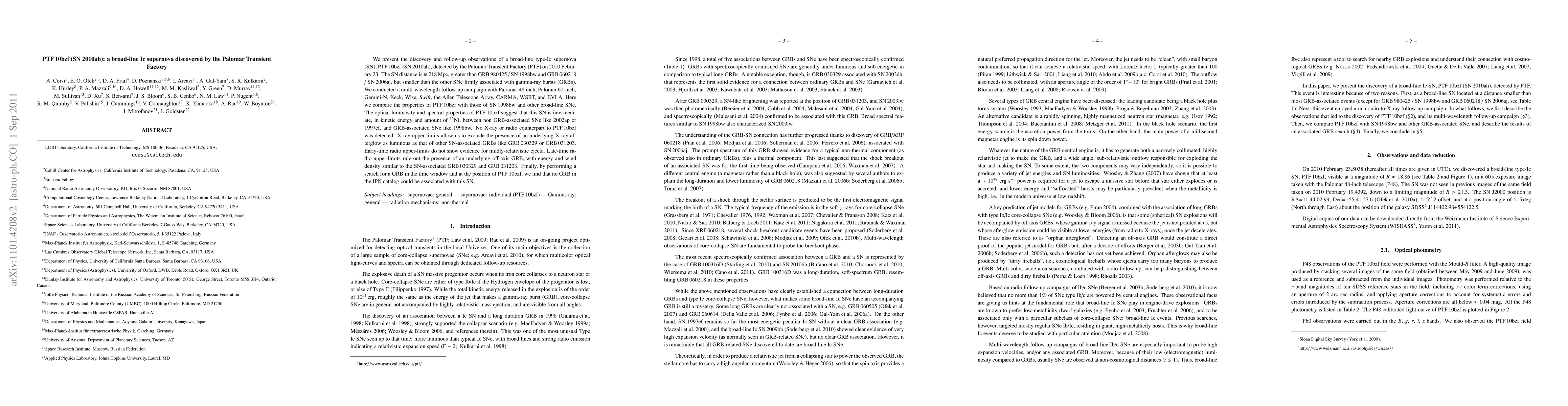 PTF 10bzf (SN 2010ah) is a broad-line type-Ic supernova discovered by the Palomar Transient Factory, showing properties intermediate between non-GRB associated and GRB-associated supernovae, with no detected X-ray or radio counterparts.