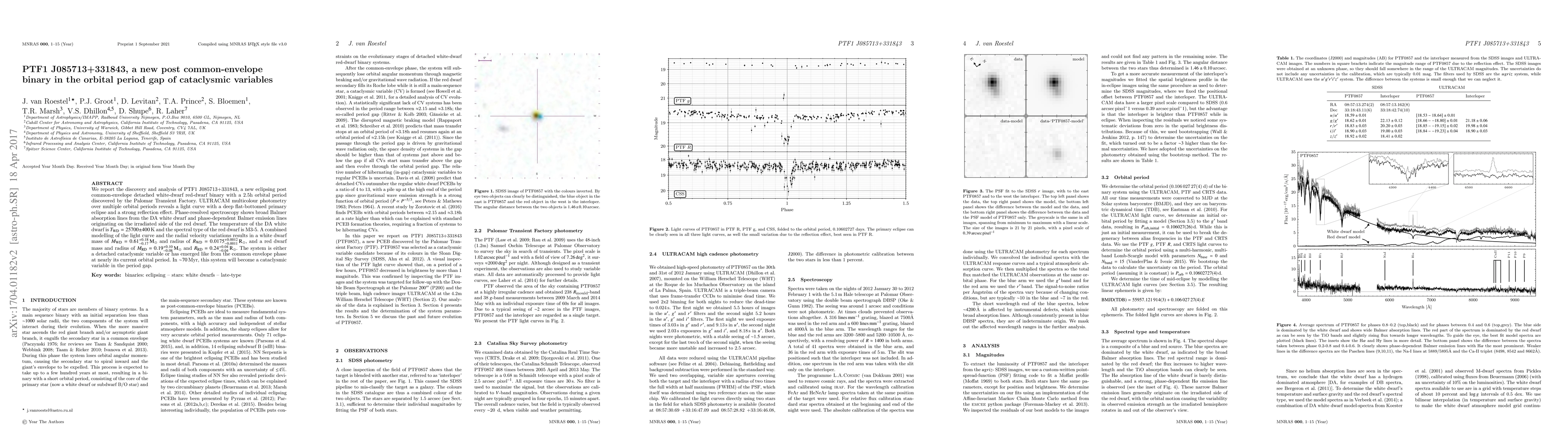 PTF1 J085713+331843 is a new post common-envelope binary consisting of a detached white dwarf and red dwarf, discovered with a 2.5h orbital period. The system will evolve into a cataclysmic variable in approximately 70 million years.