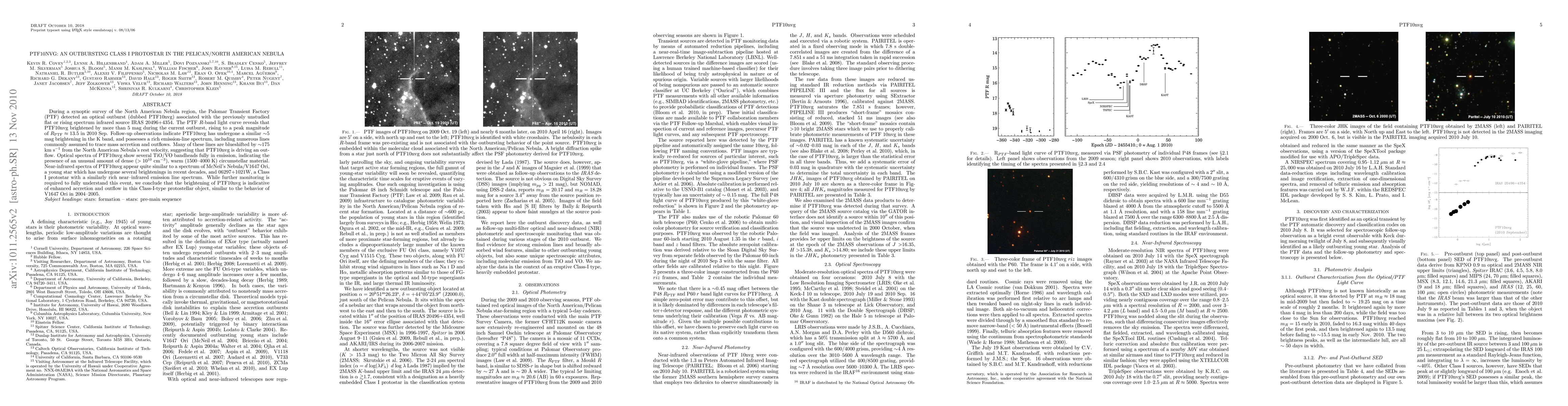 During a synoptic survey of the North American Nebula region, the Palomar Transient Factory (PTF) detected an optical outburst (dubbed PTF10nvg) associated with the previously unstudied flat or rising spectrum infrared source IRAS 20496+4354. The PTF R-band light curve reveals that PTF10nvg brightened by more than 5 mag during the current outburst, rising to a peak magnitude of R~13.5 in 2010 Sep. Follow-up observations indicate PTF10nvg has undergone a similar ~5 mag brightening in the K band, and possesses a rich emission-line spectrum, including numerous lines commonly assumed to trace mass accretion and outflows. Many of these lines are blueshifted by ~175 km/s from the North American Nebula's rest velocity, suggesting that PTF10nvg is driving an outflow. Optical spectra of PTF10nvg show several TiO/VO bandheads fully in emission, indicating the presence of an unusual amount of dense (> 10^10 cm^-3), warm (1500-4000 K) circumstellar material. Near-infrared spectra of PTF10nvg appear quite similar to a spectrum of McNeil's Nebula/V1647 Ori, a young star which has undergone several brightenings in recent decades, and 06297+1021W, a Class I protostar with a similarly rich near--infrared emission line spectrum. While further monitoring is required to fully understand this event, we conclude that the brightening of PTF10nvg is indicative of enhanced accretion and outflow in this Class-I-type protostellar object, similar to the behavior of V1647 Ori in 2004-2005.