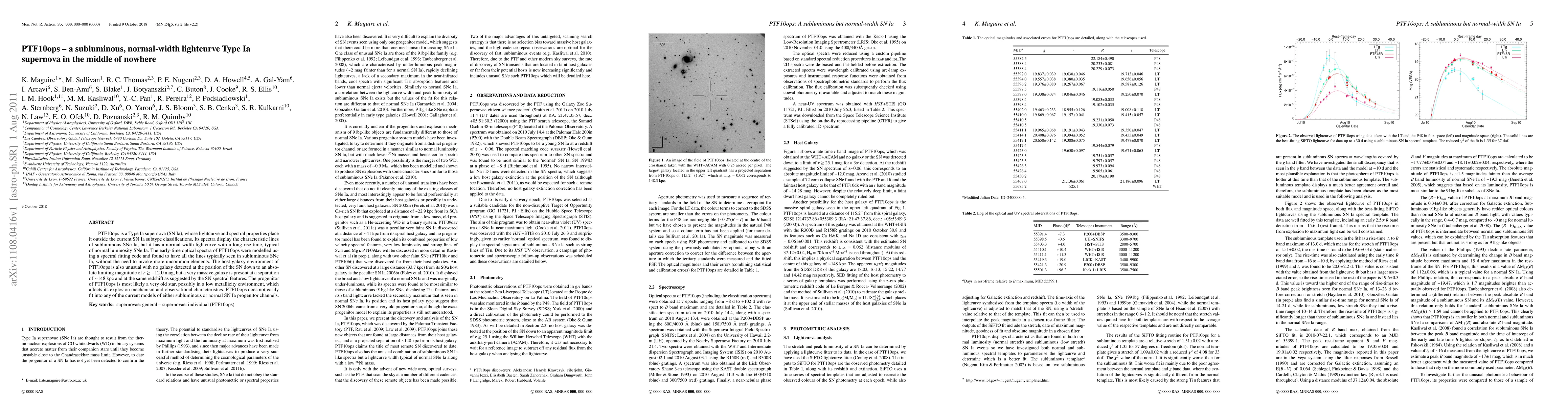 PTF10ops is a Type Ia supernova (SN Ia), whose lightcurve and spectral properties place it outside the current SN Ia subtype classifications. Its spectra display the characteristic lines of subluminous SNe Ia, but it has a normal-width lightcurve with a long rise-time, typical of normal luminosity SNe Ia. The early-time optical spectra of PTF10ops were modelled using a spectral fitting code and found to have all the lines typically seen in subluminous SNe Ia, without the need to invoke more uncommon elements. The host galaxy environment of PTF10ops is also unusual with no galaxy detected at the position of the SN down to an absolute limiting magnitude of r \geq -12.0 mag, but a very massive galaxy is present at a separation of ~148 kpc and at the same redshift as suggested by the SN spectral features. The progenitor of PTF10ops is most likely a very old star, possibly in a low metallicity environment, which affects its explosion mechanism and observational characteristics. PTF10ops does not easily fit into any of the current models of either subluminous or normal SN Ia progenitor channels.