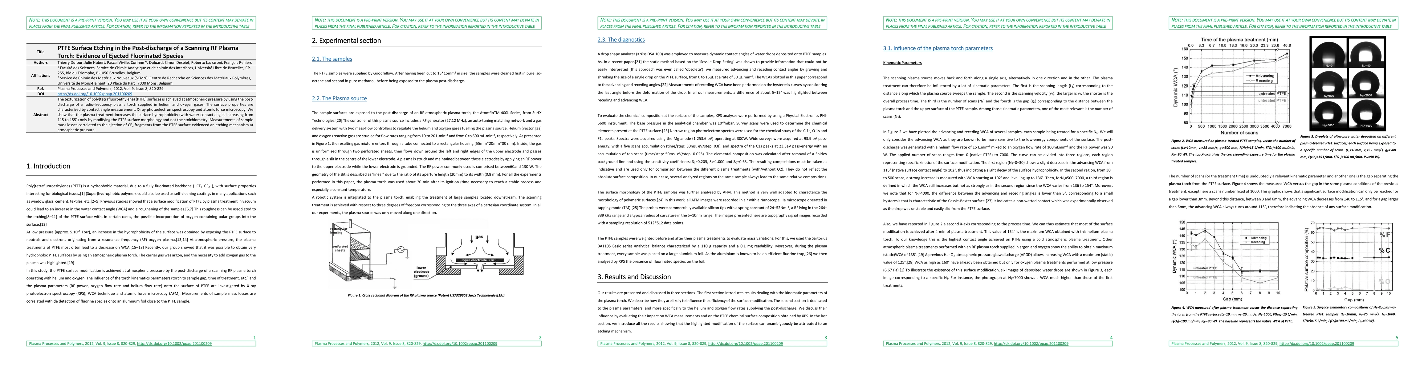 This study demonstrates the texturization of PTFE surfaces using a radio-frequency plasma torch in helium and oxygen, increasing surface hydrophobicity without altering stoichiometry. The etching mechanism involves the ejection of CF$_2$ fragments, evidenced by mass loss measurements.