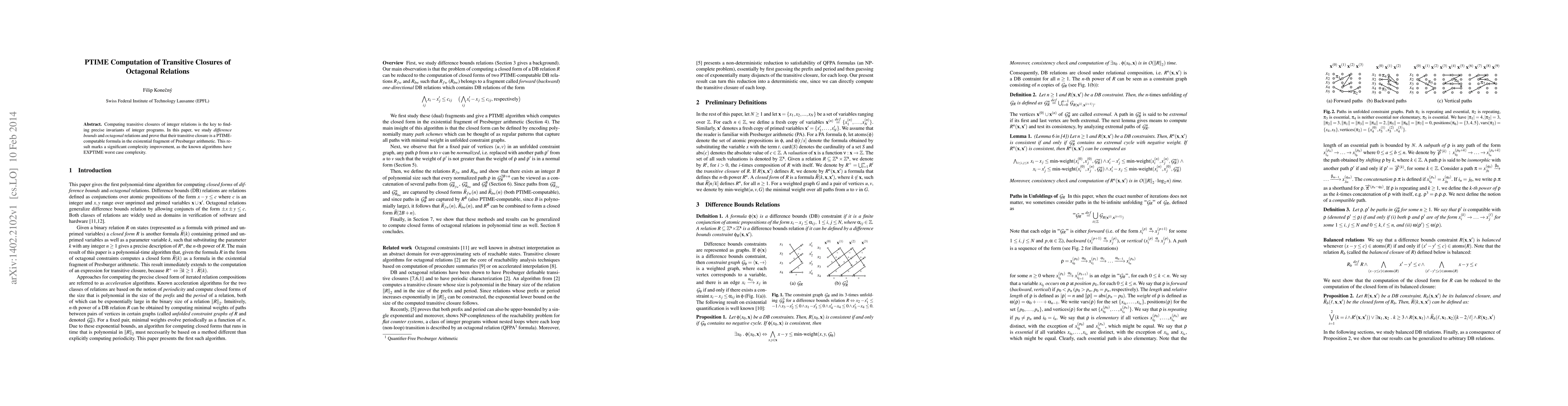 This paper presents a breakthrough in computing transitive closures of difference bounds and octagonal relations, proving them to be PTIME-computable in existential Presburger arithmetic. This significantly improves complexity from the previous EXPTIME algorithms.