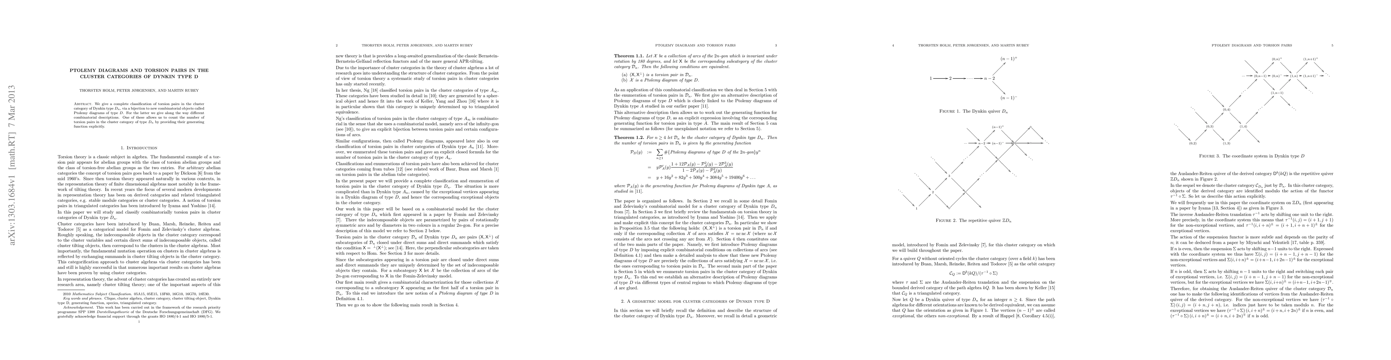 This paper classifies torsion pairs in the cluster category of Dynkin type D_n using Ptolemy diagrams, providing a combinatorial bijection and a generating function for counting these pairs. The study offers multiple combinatorial descriptions of the Ptolemy diagrams.
