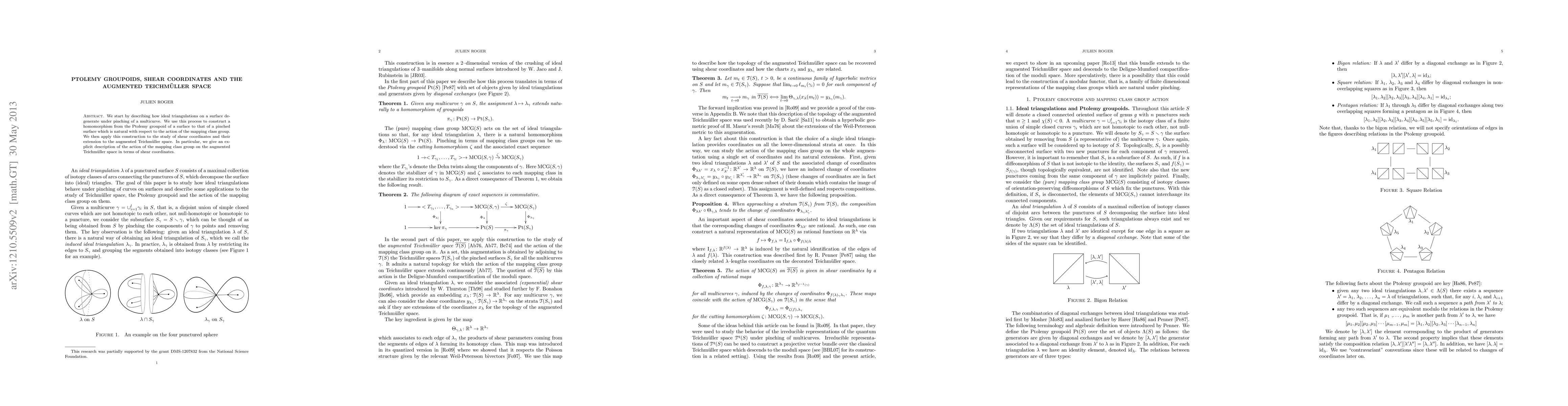 This paper constructs a homomorphism between Ptolemy groupoids on pinched surfaces, linking ideal triangulations and the mapping class group. It further extends shear coordinates to the augmented Teichmüller space, providing an explicit description of the mapping class group's action.