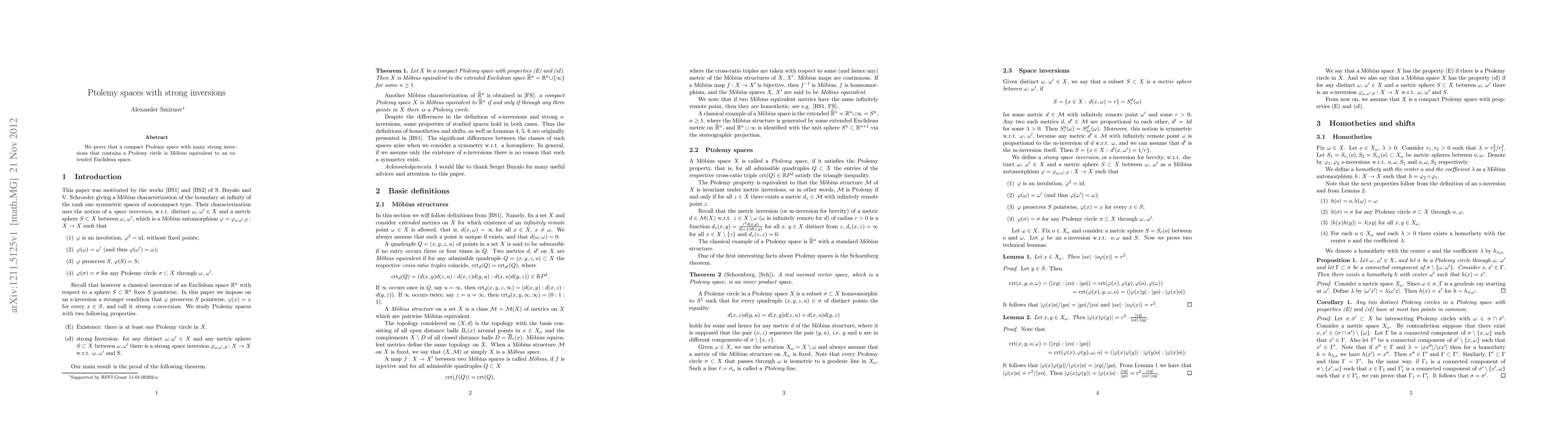 Summary: This paper demonstrates that a compact Ptolemy space with numerous strong inversions and a Ptolemy circle is Moebius equivalent to an extended Euclidean space. The result hinges on the properties of strong inversions within the space.