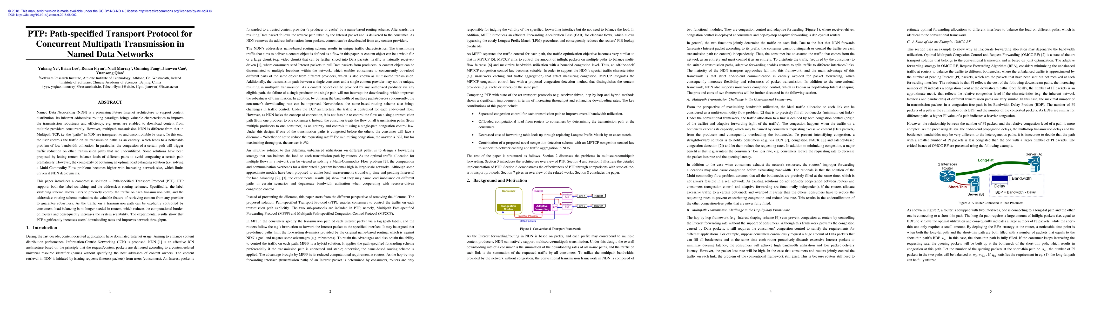 Named Data Networking (NDN) is a promising Future Internet architecture to support content distribution. Its inherent addressless routing paradigm brings valuable characteristics to improve the transmission robustness and efficiency, e.g. users are enabled to download content from multiple providers concurrently. However, multipath transmission NDN is different from that in Multipath TCP, i.e. the "paths" in NDN are transparent to and uncontrollable by users. To this end, the user controls the traffic on all transmission paths as an entirety, which leads to a noticeable problem of low bandwidth utilization. In particular, the congestion of a certain path will trigger the traffic reduction on the other transmission paths that are underutilized. Some solutions have been proposed by letting routers balance the loads of different paths to avoid congesting a certain path prematurely. However, the complexity of obtaining an optimal load balancing solution (of solving a Multi-Commodity Flow problem) becomes higher with the increasing network size, which limits the universal NDN deployments. This paper introduces a compromising solution - Path-specified Transport Protocol (PTP). PTP supports both the label switching and the addressless routing schemes. Specifically, the label switching scheme facilitates users to precisely control the traffic on each transmission path, and the addressless routing scheme maintains the valuable feature of retrieving content from any provider to guarantee robustness. As the traffic on a transmission path can be explicitly controlled by consumers, load balancing is no longer needed in routers, which reduce the computational burden of routers and consequently increase the system scalability. The experimental results show that PTP significantly increases the users' downloading rates and improved the network throughput.