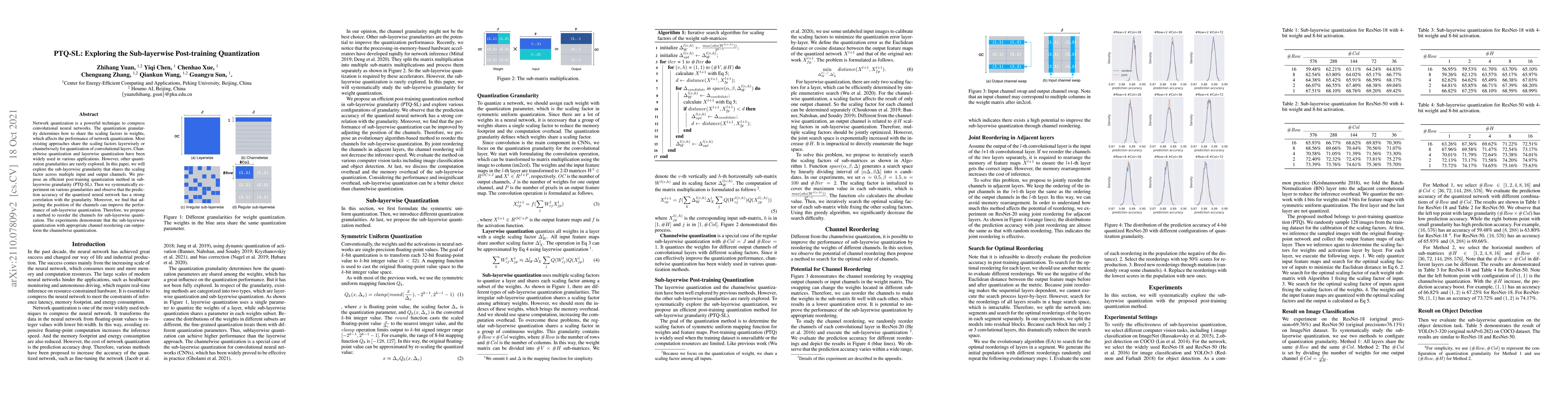 Network quantization is a powerful technique to compress convolutional neural networks. The quantization granularity determines how to share the scaling factors in weights, which affects the performance of network quantization. Most existing approaches share the scaling factors layerwisely or channelwisely for quantization of convolutional layers. Channelwise quantization and layerwise quantization have been widely used in various applications. However, other quantization granularities are rarely explored. In this paper, we will explore the sub-layerwise granularity that shares the scaling factor across multiple input and output channels. We propose an efficient post-training quantization method in sub-layerwise granularity (PTQ-SL). Then we systematically experiment on various granularities and observe that the prediction accuracy of the quantized neural network has a strong correlation with the granularity. Moreover, we find that adjusting the position of the channels can improve the performance of sub-layerwise quantization. Therefore, we propose a method to reorder the channels for sub-layerwise quantization. The experiments demonstrate that the sub-layerwise quantization with appropriate channel reordering can outperform the channelwise quantization.