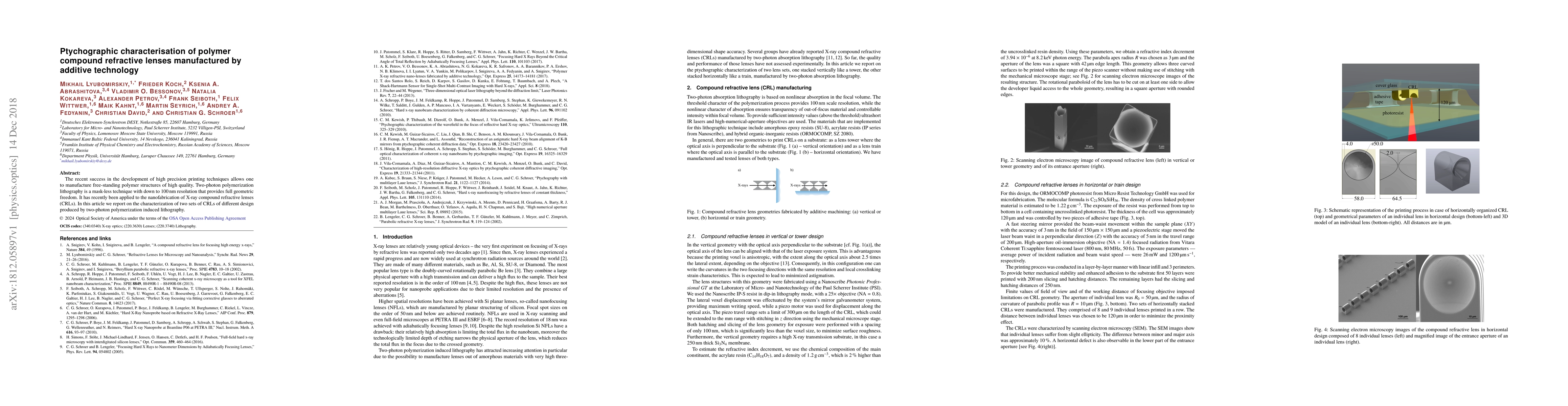 The recent success in the development of high precision printing techniques allows one to manufacture free-standing polymer structures of high quality. Two-photon polymerization lithography is a mask-less technique with down to 100 {\mu}m resolution that provides full geometric freedom. It has recently been applied to the nanofabrication of X-ray compound refractive lenses (CRLs). In this article we report on the characterization of two sets of CRLs of different design produced by two-photon polymerization induced lithography.