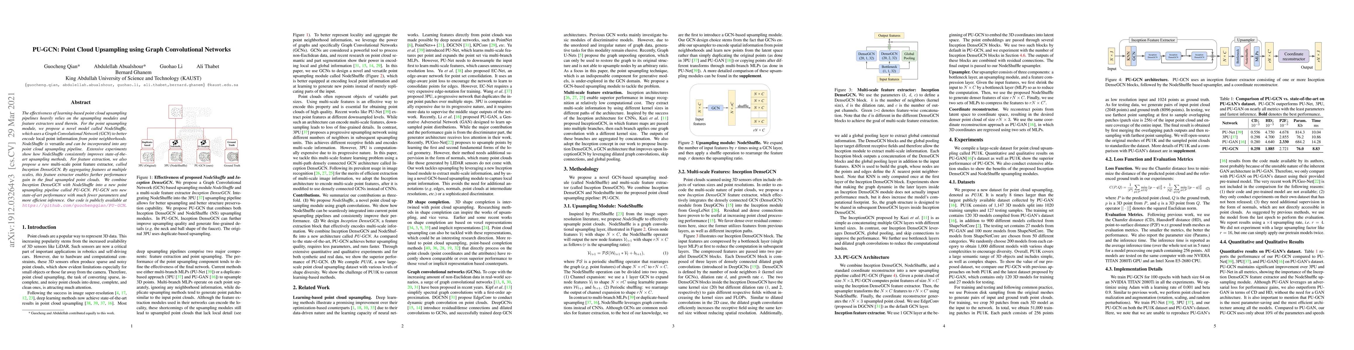 PU-GCN introduces NodeShuffle, a GCN-based point upsampling module, and Inception DenseGCN, a multi-scale feature extractor, to achieve state-of-the-art performance in point cloud upsampling with fewer parameters and faster inference.