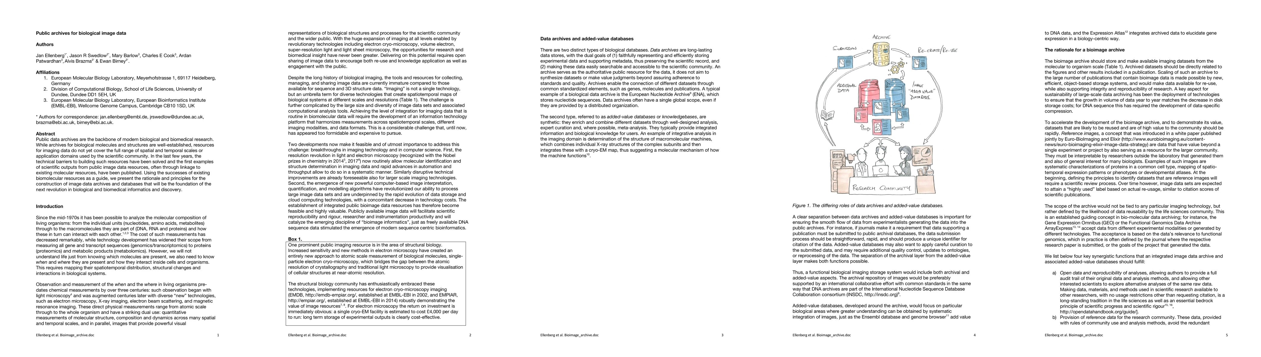Public data archives are the backbone of modern biological and biomedical research. While archives for biological molecules and structures are well-established, resources for imaging data do not yet cover the full range of spatial and temporal scales or application domains used by the scientific community. In the last few years, the technical barriers to building such resources have been solved and the first examples of scientific outputs from public image data resources, often through linkage to existing molecular resources, have been published. Using the successes of existing biomolecular resources as a guide, we present the rationale and principles for the construction of image data archives and databases that will be the foundation of the next revolution in biological and biomedical informatics and discovery.