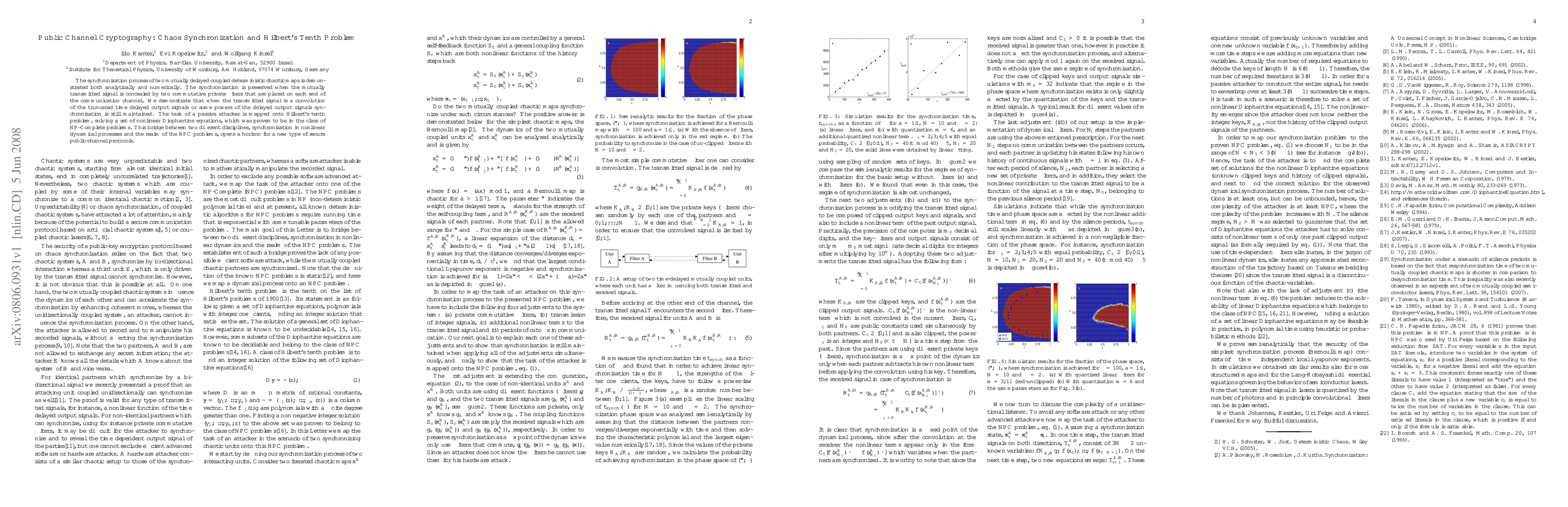 This paper explores the synchronization of two coupled chaotic maps through a secure communication channel, demonstrating that synchronization persists even when signals are filtered and manipulated. The security against passive attackers is linked to the complexity of solving nonlinear Diophantine equations, akin to Hilbert's tenth problem, suggesting a new secure public-channel cryptography method.
