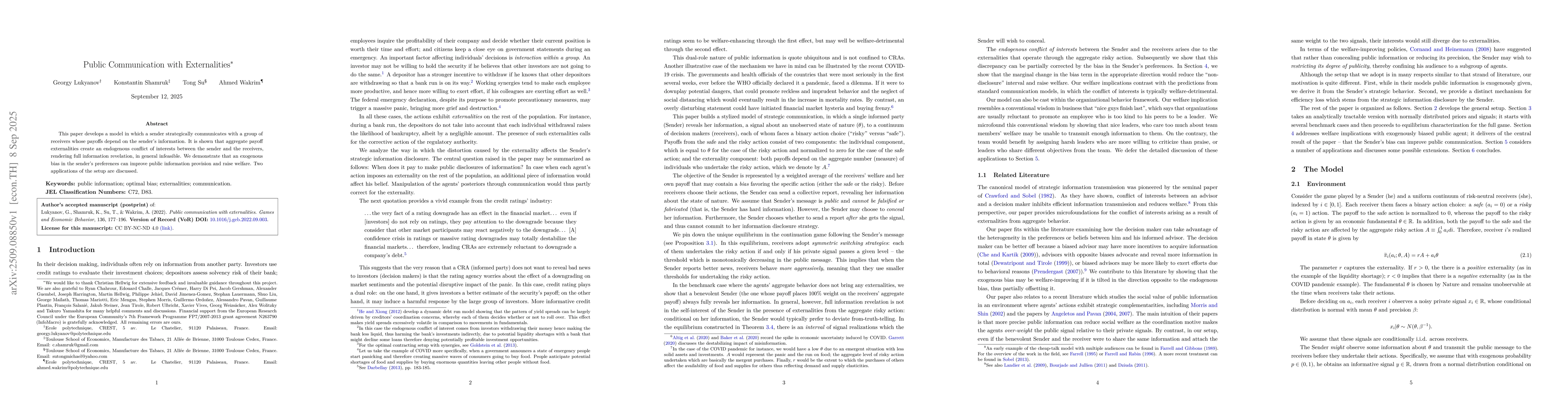This paper develops a model in which a sender strategically communicates with a group of receivers whose payoffs depend on the sender's information. It is shown that aggregate payoff externalities create an endogenous conflict of interests between the sender and the receivers, rendering full information revelation, in general infeasible. We demonstrate that an exogenous bias in the sender's preferences can improve public information provision and raise welfare. Two applications of the setup are discussed.