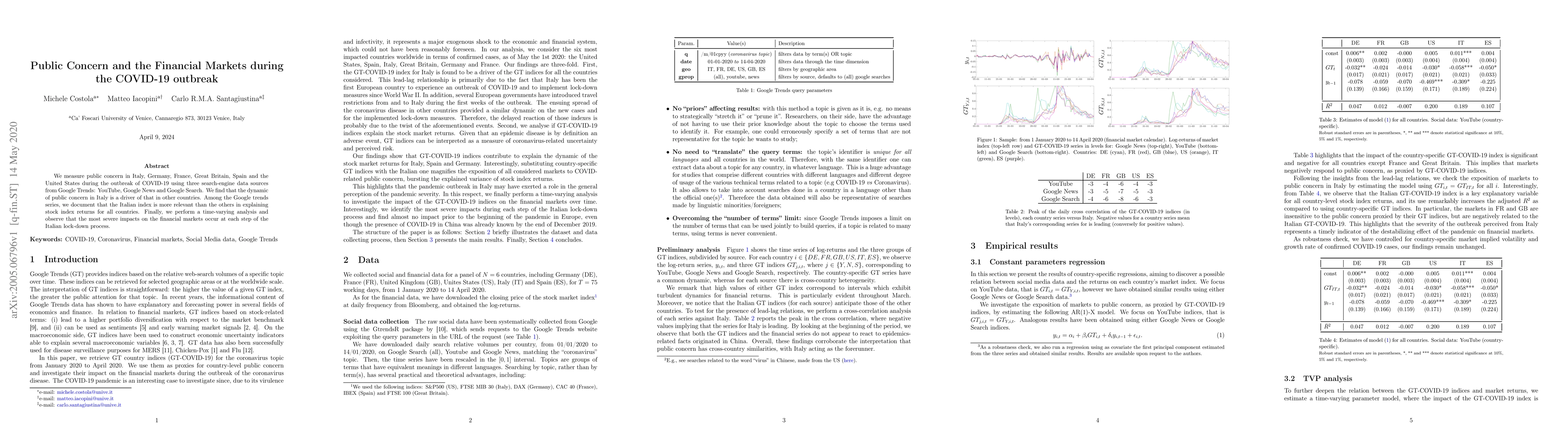 This paper examines public concern during the COVID-19 outbreak using Google Trends data, finding that Italian public concern significantly influences other countries' concerns. It also shows that Italian trends better predict stock returns in major global markets than domestic indicators, with financial markets most impacted during Italy's lockdown phases.