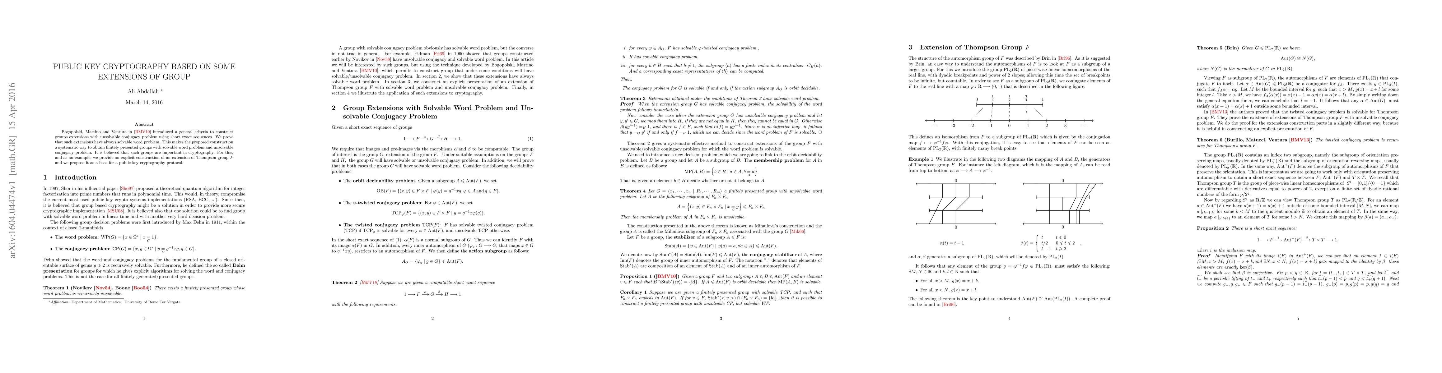 Bogopolski, Martino and Ventura in [BMV10] introduced a general criteria to construct groups extensions with unsolvable conjugacy problem using short exact sequences. We prove that such extensions have always solvable word problem. This makes the proposed construction a systematic way to obtain finitely presented groups with solvable word problem and unsolvable conjugacy problem. It is believed that such groups are important in cryptography. For this, and as an example, we provide an explicit construction of an extension of Thompson group F and we propose it as a base for a public key cryptography protocol.