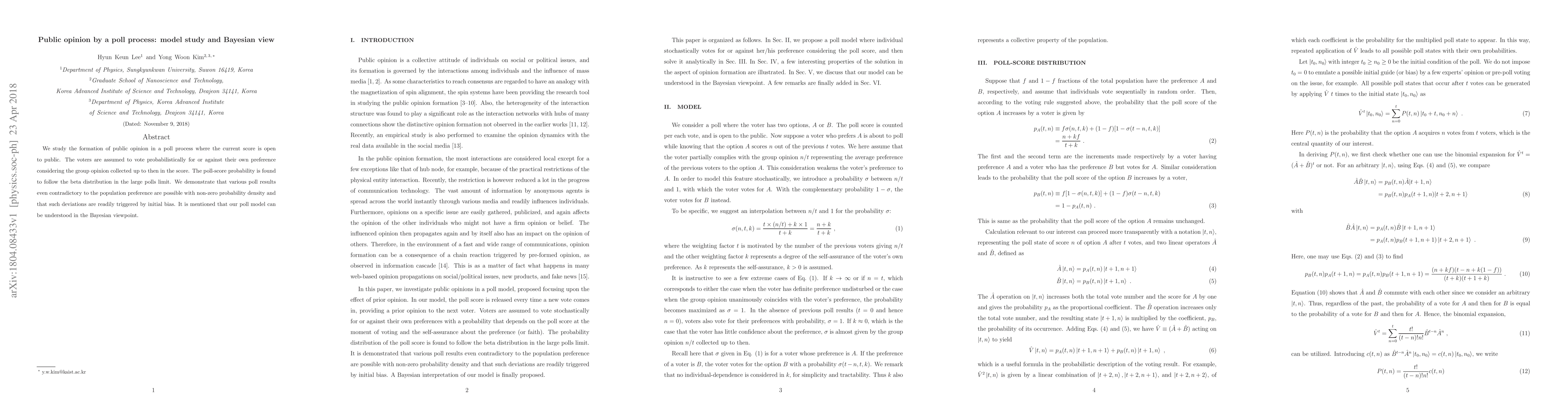 This paper explores how public opinion forms in a poll process, showing that poll results can diverge from true population preferences due to initial biases. The poll score follows a beta distribution in large polls, and the model is compatible with a Bayesian interpretation.