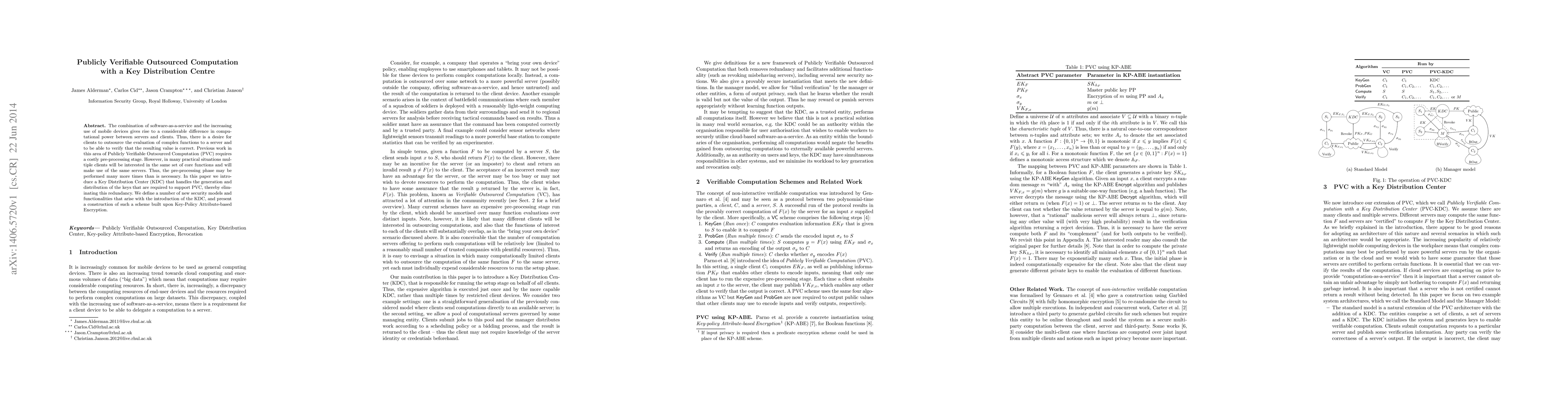 The combination of software-as-a-service and the increasing use of mobile devices gives rise to a considerable difference in computational power between servers and clients. Thus, there is a desire for clients to outsource the evaluation of complex functions to a server and to be able to verify that the resulting value is correct. Previous work in this area of Publicly Verifiable Outsourced Computation (PVC) requires a costly pre-processing stage. However, in many practical situations multiple clients will be interested in the same set of core functions and will make use of the same servers. Thus, the pre-processing phase may be performed many more times than is necessary. In this paper we introduce a Key Distribution Center (KDC) that handles the generation and distribution of the keys that are required to support PVC, thereby eliminating this redundancy. We define a number of new security models and functionalities that arise with the introduction of the KDC, and present a construction of such a scheme built upon Key-Policy Attribute-based Encryption.