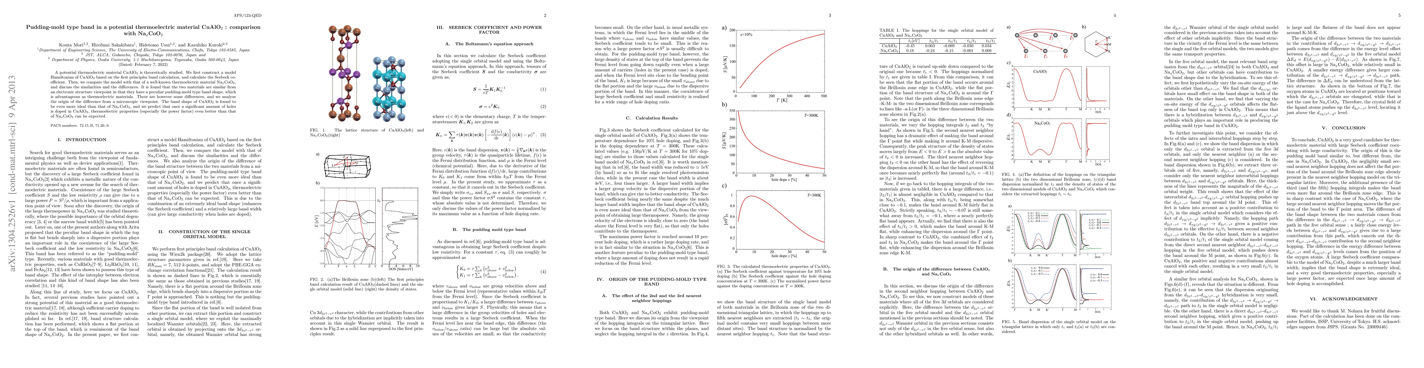 Researchers study CuAlO2 as a potential thermoelectric material, comparing its electronic structure to Na_xCoO_2, finding similarities in 'pudding-mold' band shape but predicting improved properties with hole doping.