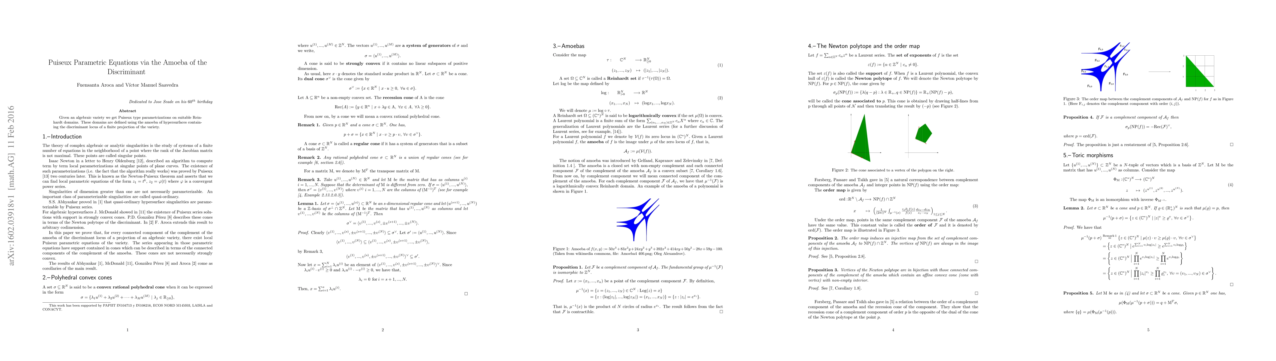 Given an algebraic variety we get Puiseux type parametrizations on suitable Reinhardt domains. These domains are defined using the amoeba of hypersurfaces containing the discriminant locus of a finite projection of the variety.