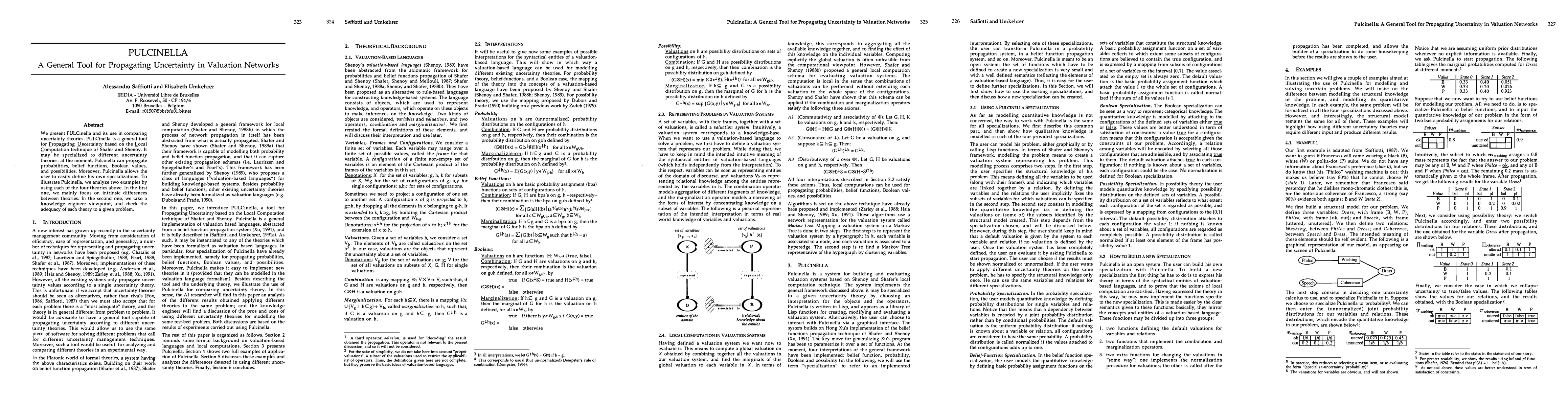 Pulcinella is a general tool for propagating uncertainty in valuation networks, based on Shafer and Shenoy's local computation technique. It can be specialized for different uncertainty theories such as probabilities, belief functions, Boolean values, and possibilities.